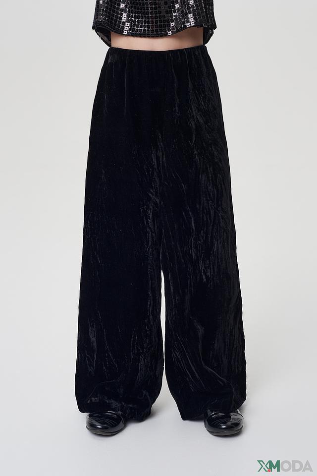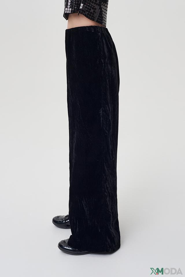 Особенности дизайна: прямой крой, широкие штанины, высокая посадка. Бархатная ткань придает брюкам роскошный вид и мягкость. Данная модель идеально сочетается с блузками, топами и жакетами, создавая элегантные и стильные образы.