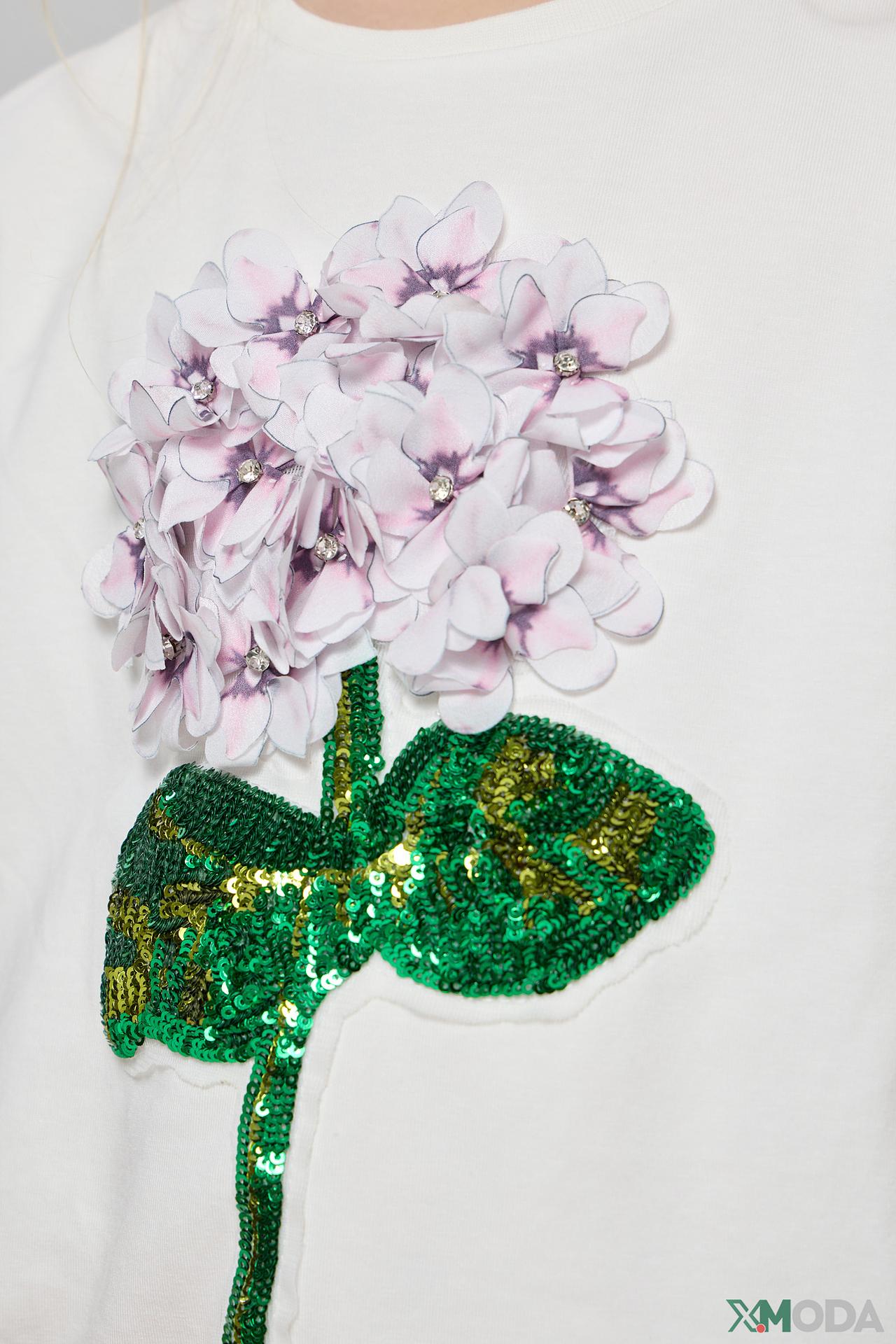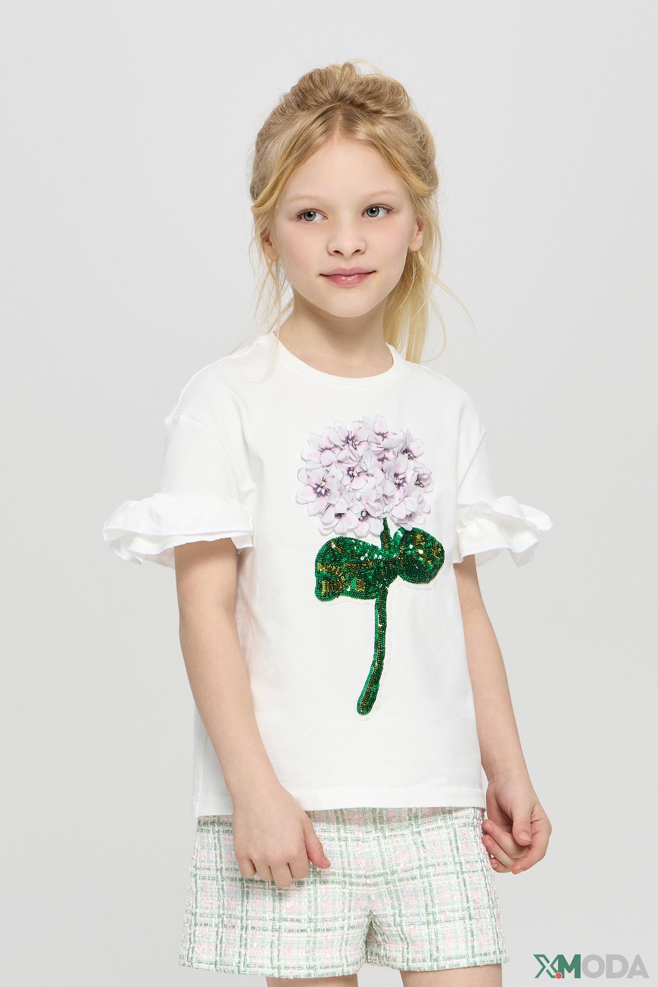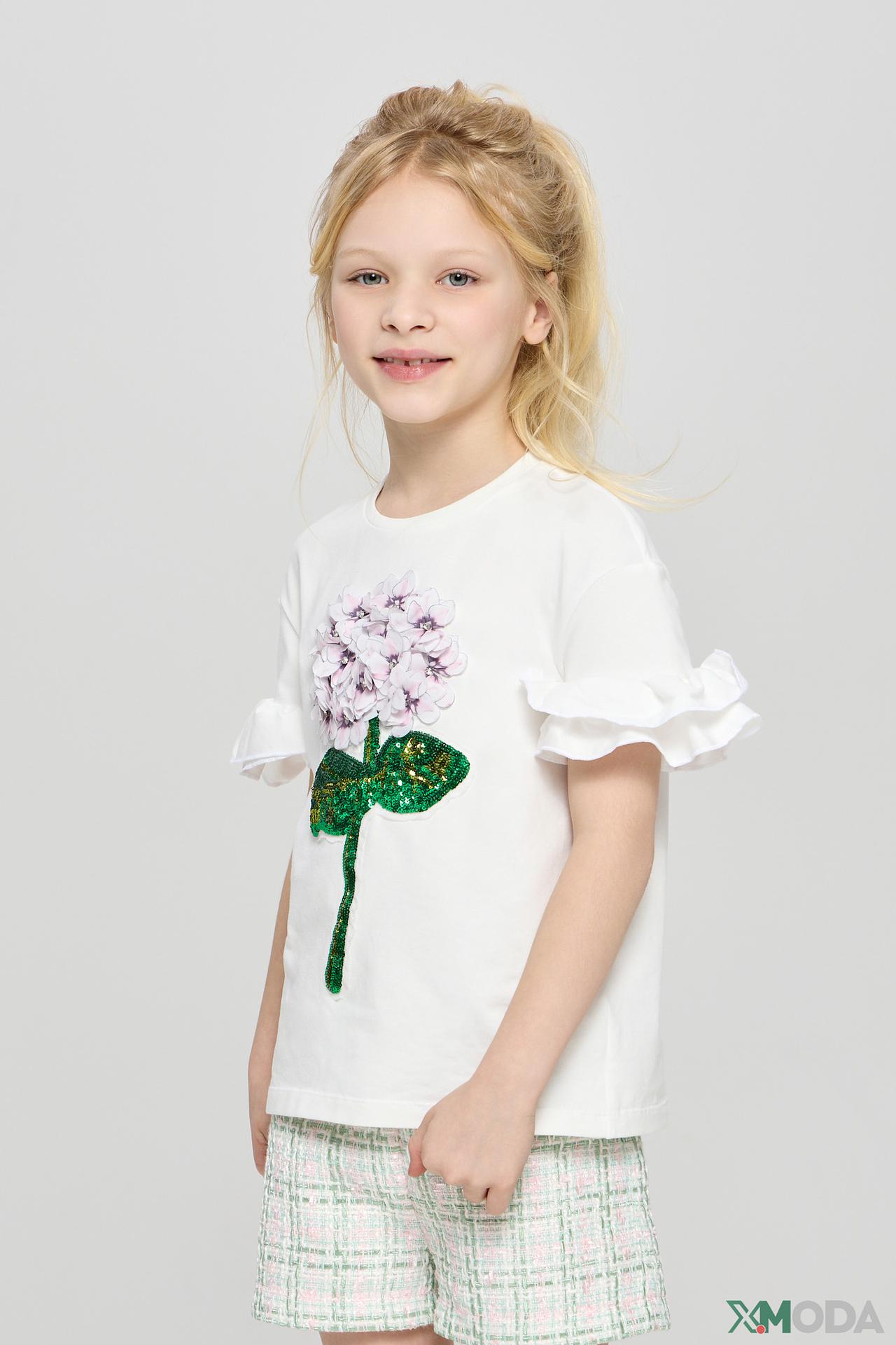 Футболка Choupette белая с цветочной аппликацией и рюшами