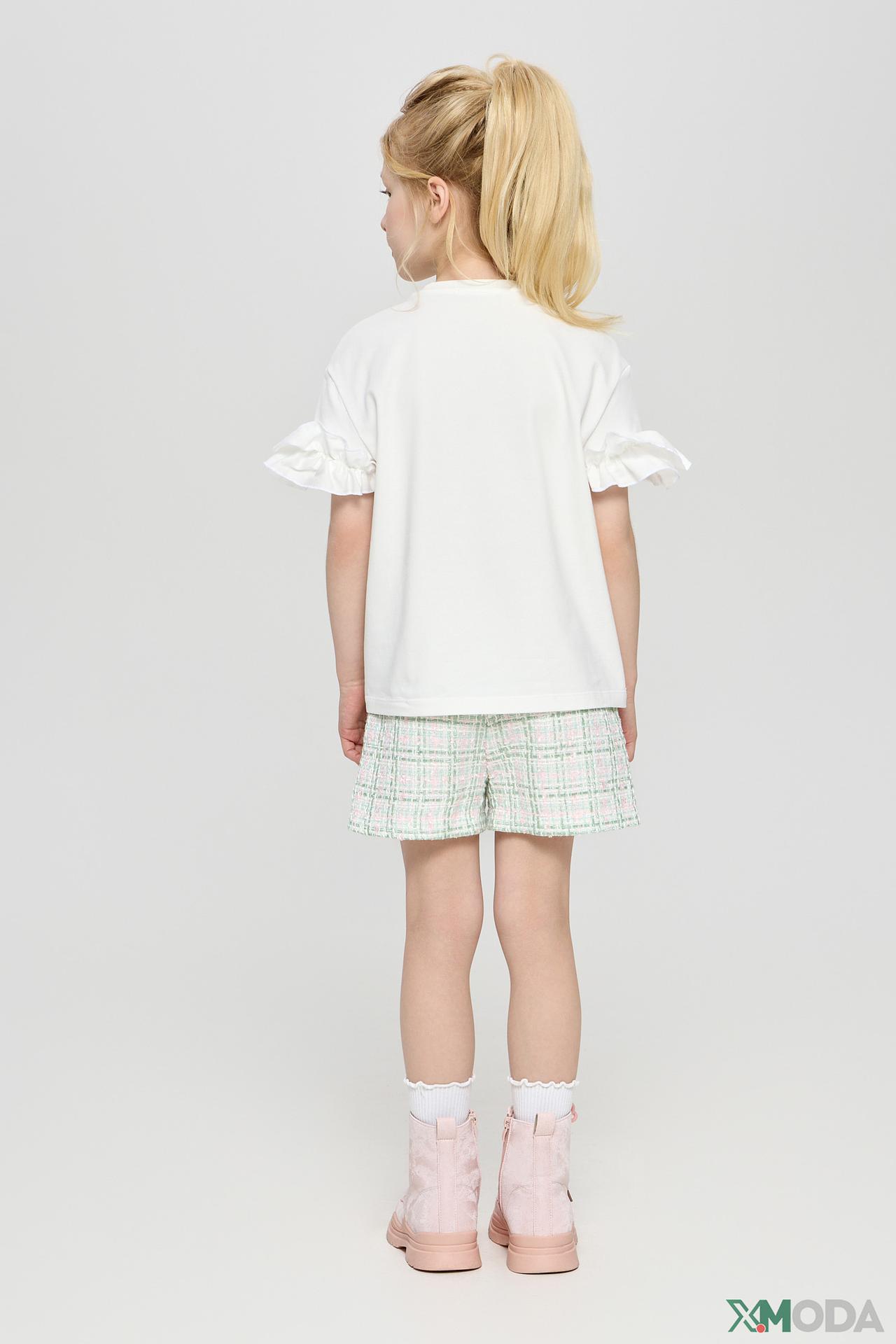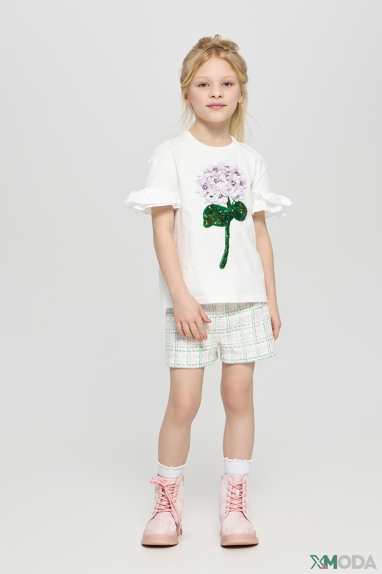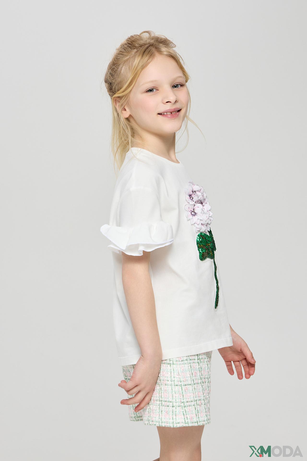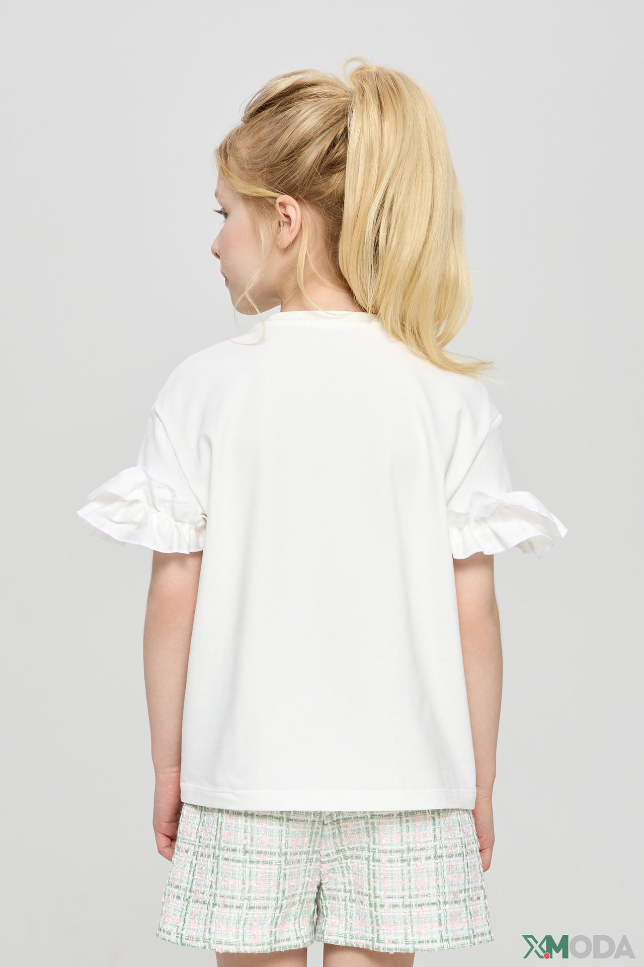 Футболка Choupette белая с цветочной аппликацией и рюшами