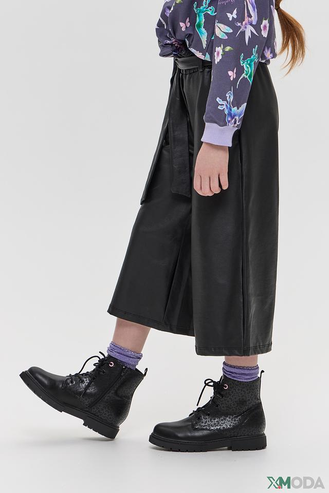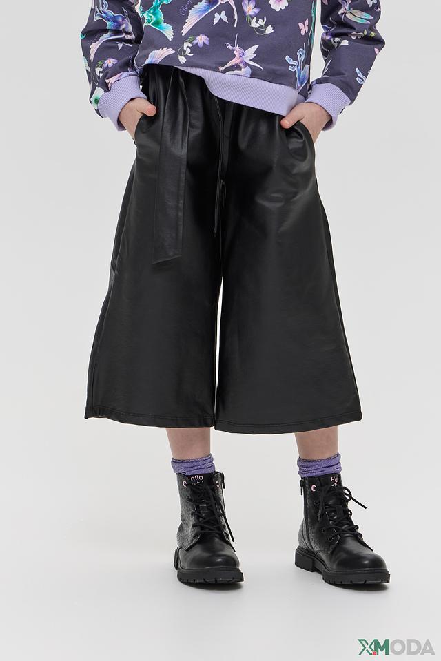 Чёрные брюки-кюлоты от Choupette – стильный и удобный выбор для юных модниц. Модель выполнена из качественной экокожи и дополнена декоративным поясом с кисточками. Состав: хлопок 95%, полиуретан 5%