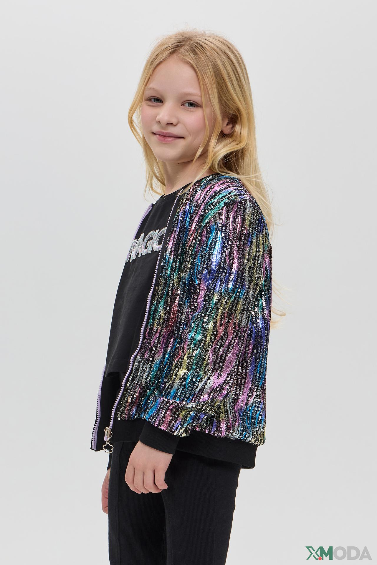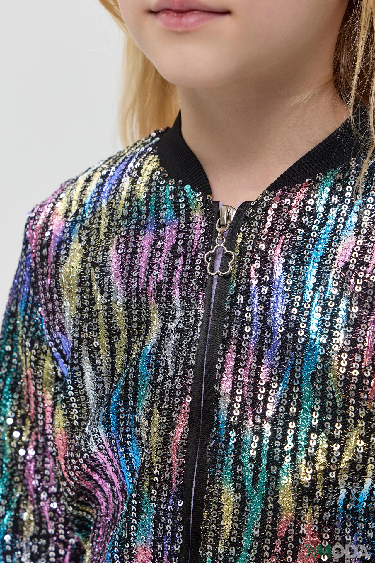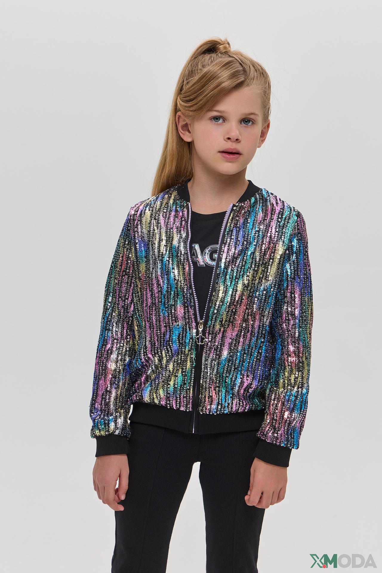 Этот стильный жакет станет ярким акцентом в гардеробе юной модницы. Переливающийся всеми цветами радуги, он добавит блеска и оригинальности любому образу. Идеальный выбор для создания запоминающихся и модных детских образов. Этот жакет отлично подойдет для праздничных мероприятий и повседневной носки, позволяя девочке чувствовать себя уверенно и стильно.