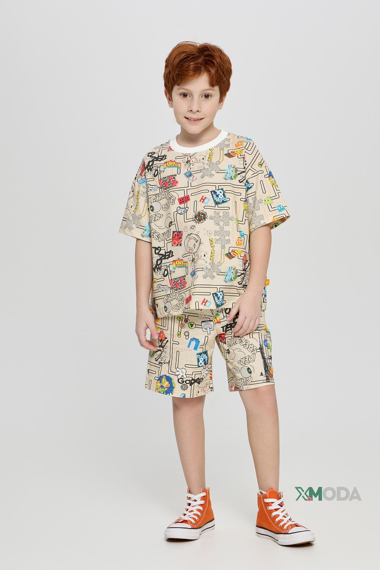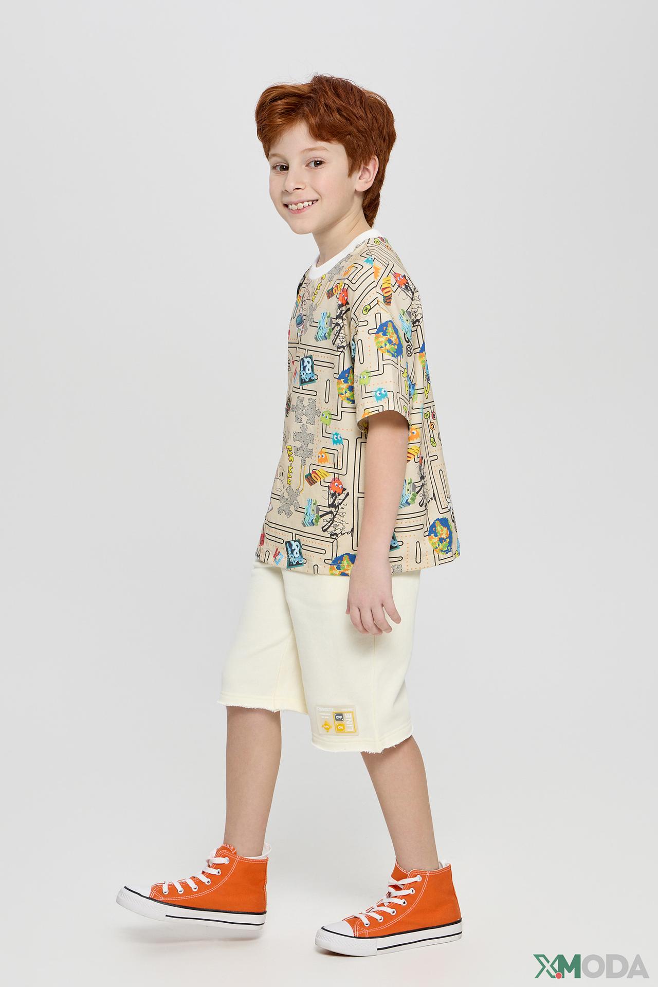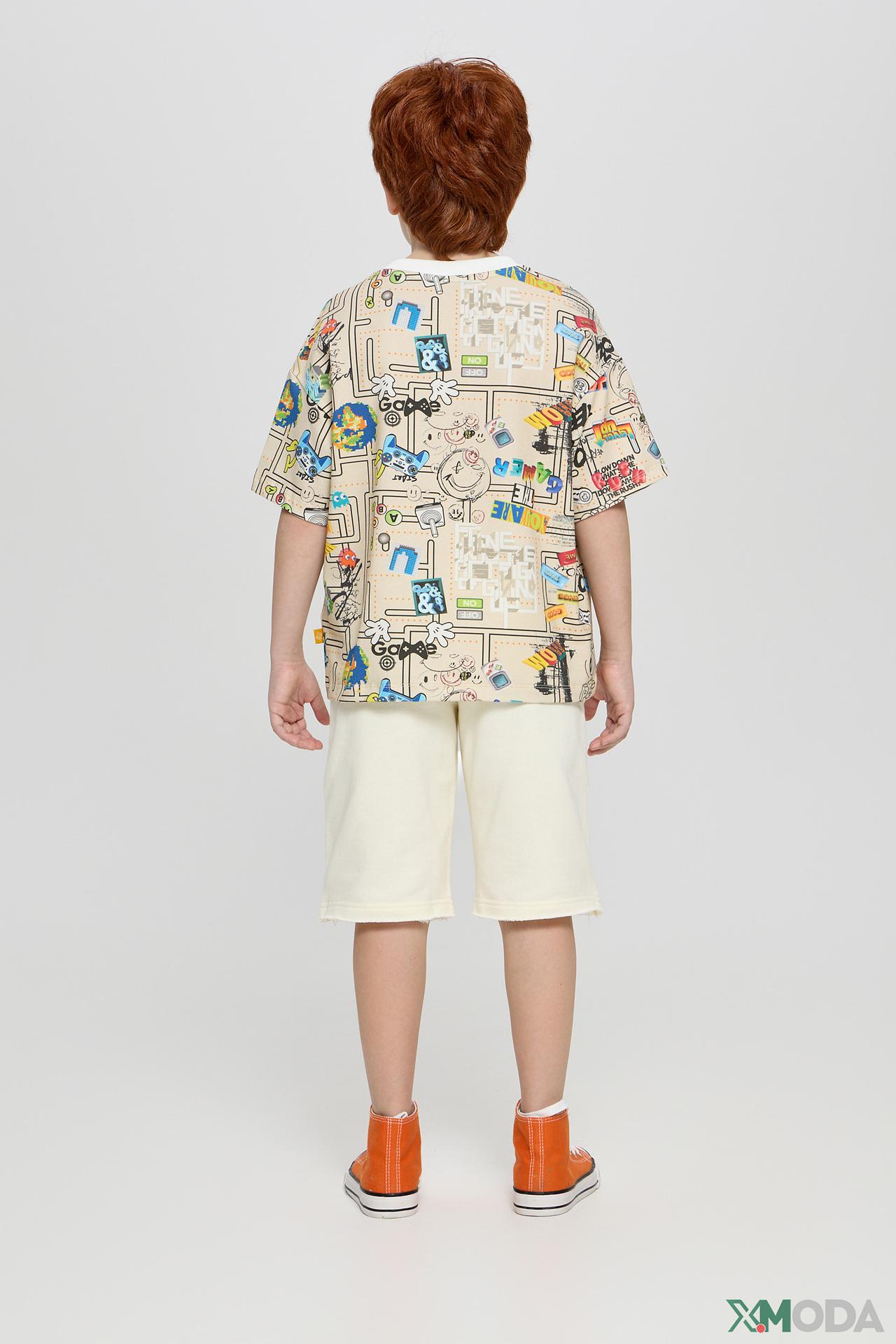 - Яркий дизайн: Футболка украшена оригинальным и динамичным геймерским принтом, который привлечет внимание и подчеркнет индивидуальность юного модника. Множество ярких деталей на бежевом фоне делают ее по-настоящему уникальной.