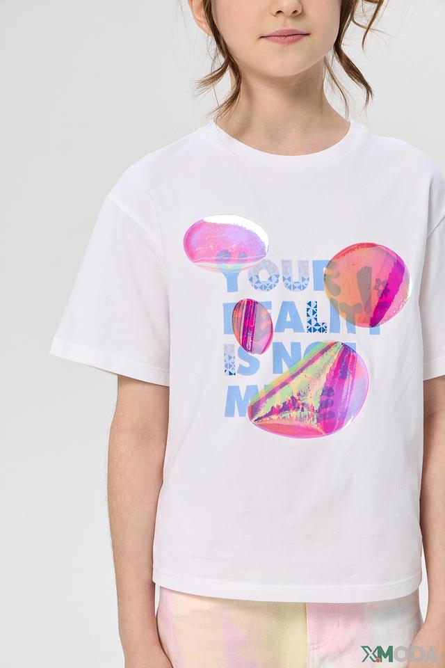 Состав ткани: 96% хлопок, 4% эластан. Футболка проста в уходе и идеально подходит для активных девочек. Она легко сочетается с джинсами, шортами или юбками, создавая разнообразные образы.