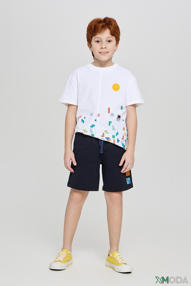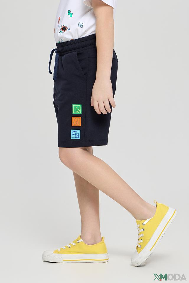 Шорты имеют классический крой и эластичный пояс с регулируемой кулиской, благодаря чему они идеально сидят по фигуре. Яркие аппликации в виде геометрических фигур и пиксельных элементов придают им игривый и современный вид.