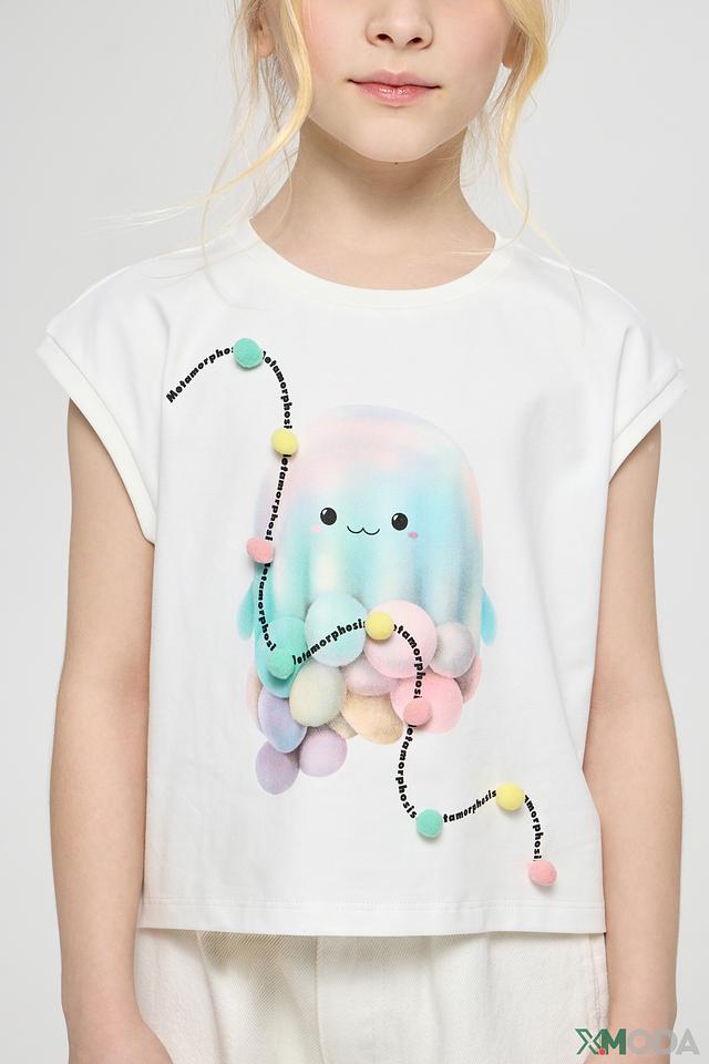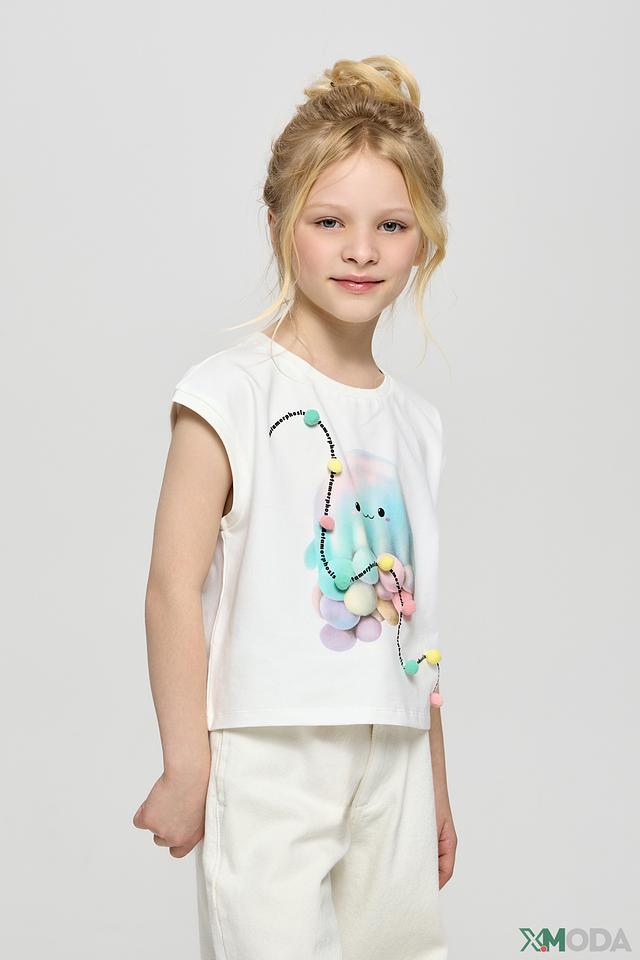 Белая футболка Choupette для девочки с ярким принтом в виде милого осьминога. Изготовлена из мягкого хлопка с добавлением полиуретана для комфорта и долговечности. Отличный выбор для повседневной носки. Состав: хлопок 90%, полиуретан 10%