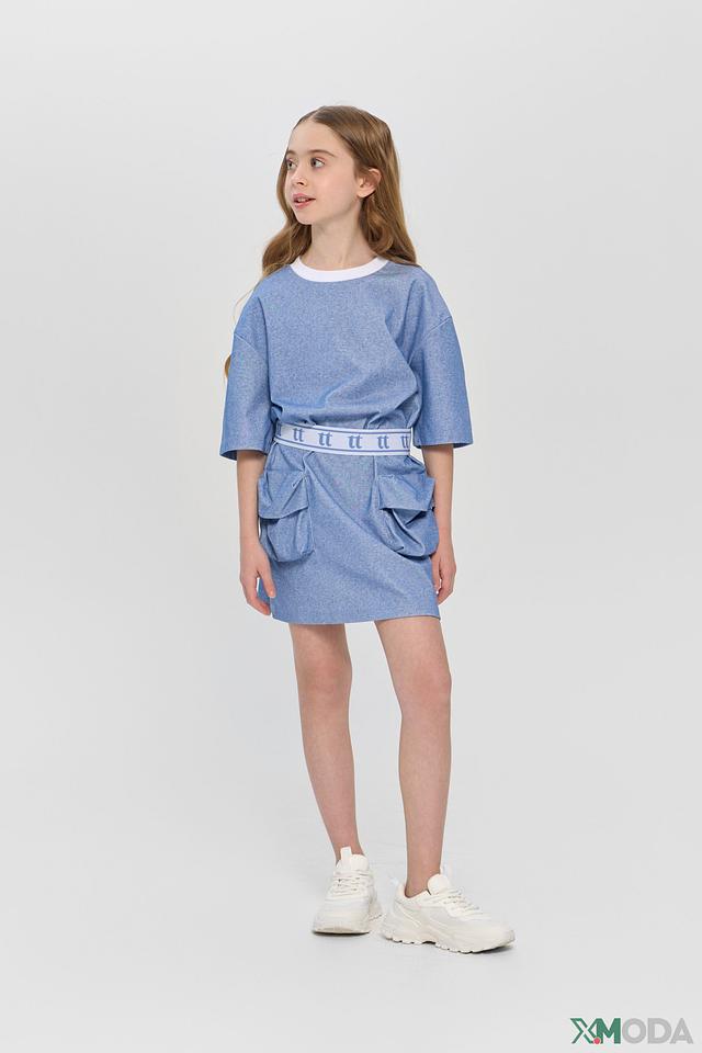 Джинсовое платье Choupette голубого цвета – стильный и удобный выбор для юных модниц. Модель выполнена в виде комплекта с топом и юбкой на резинке, декорирована накладными карманами и поясом. Состав: хлопок 98%, полиуретан 2%