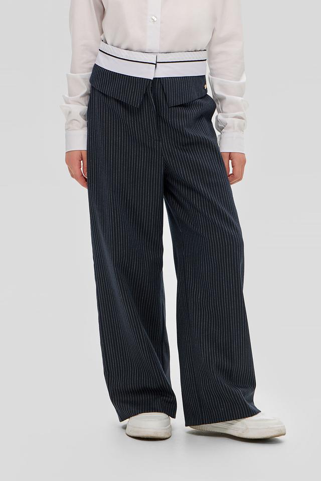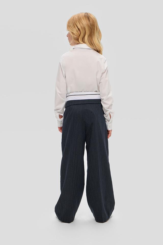 Стильные брюки Choupette для девочки, тёмно-синего цвета в вертикальную полоску, с широкими штанинами и эластичным поясом. Модель выполнена из качественного смесового материала, обеспечивающего комфорт и удобство в носке. Состав: Состав_подкладка вискоза 100%, полиэстер 74%, вискоза 23%, полиуретан 3%
