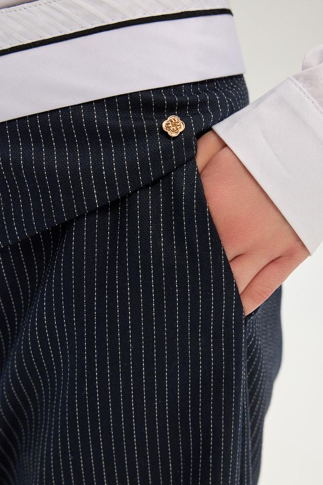 Стильные брюки Choupette для девочки, тёмно-синего цвета в полоску. Модель выполнена из смесового состава с добавлением вискозы и полиэстера, обеспечивающего комфорт и практичность. Состав: Состав_подкладка вискоза 100%, полиэстер 74%, вискоза 23%, полиуретан 3%
