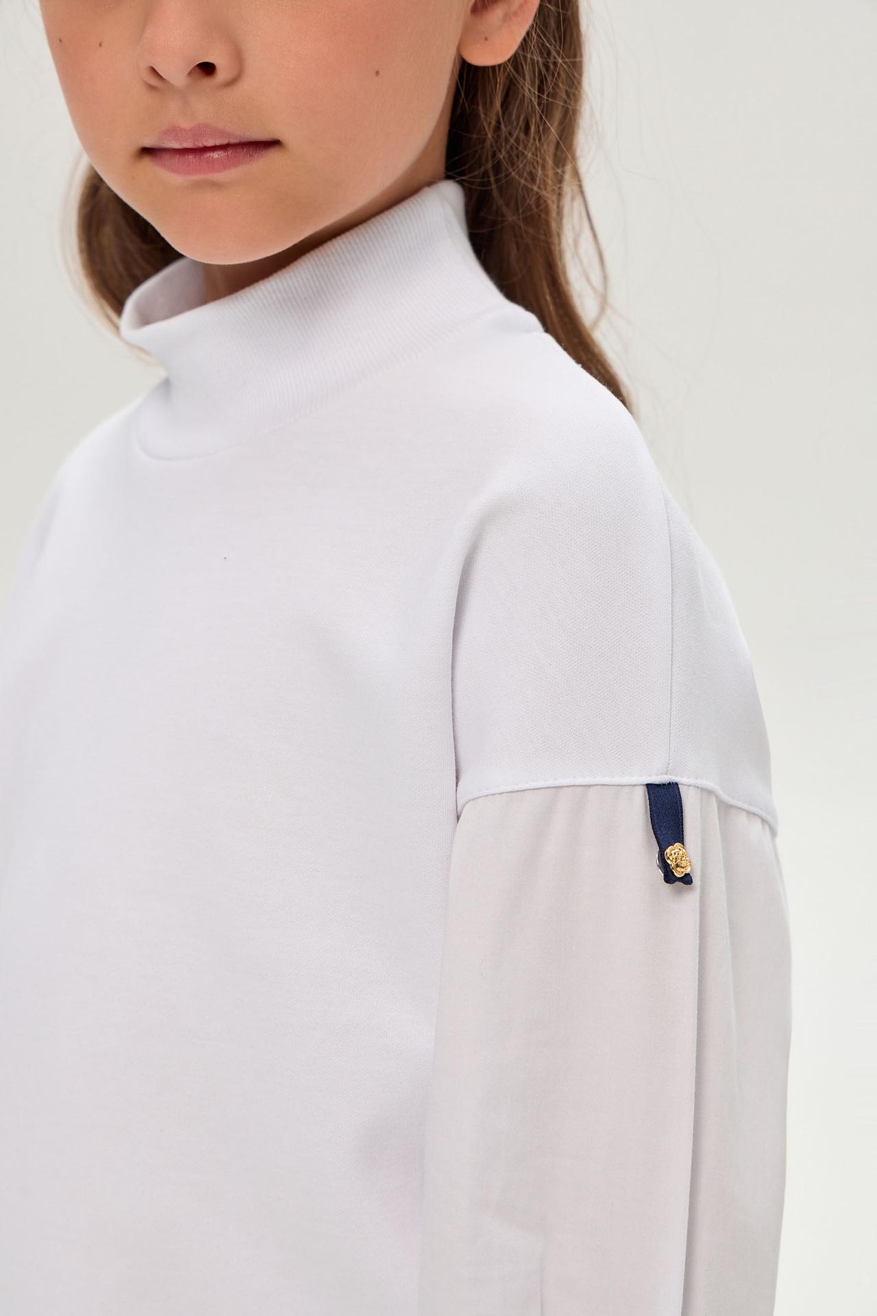Элегантный белый джемпер для девочек от Choupette – идеальный выбор для создания стильного и комфортного образа. Сочетание мягкого трикотажа и рубашечных рукавов добавляет изюминку и делает этот джемпер отличным вариантом для школы или прогулок. Прекрасно сочетается с юбками и брюками, создавая аккуратный и современный вид.