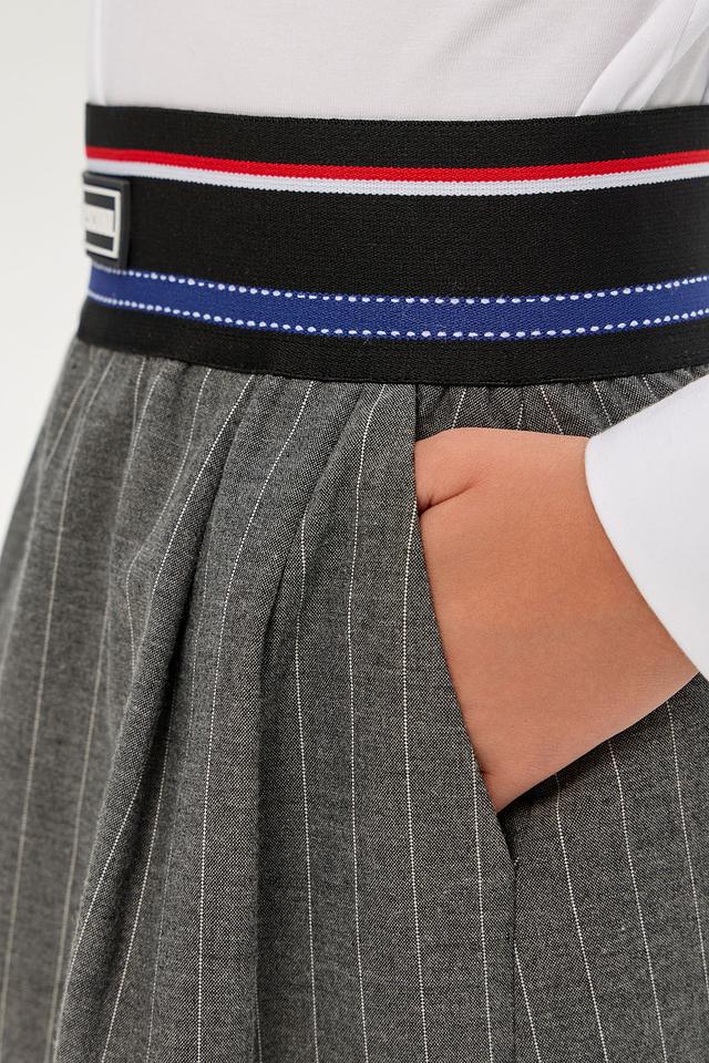 Стильная юбка Choupette серого цвета с полоской станет отличным дополнением к школьному гардеробу девочки. Модель выполнена из приятной на ощупь ткани и имеет удобный эластичный пояс. Состав: Состав_подкладка вискоза 100%, полиэстер 64%, вискоза 32%, полиуретан 4%