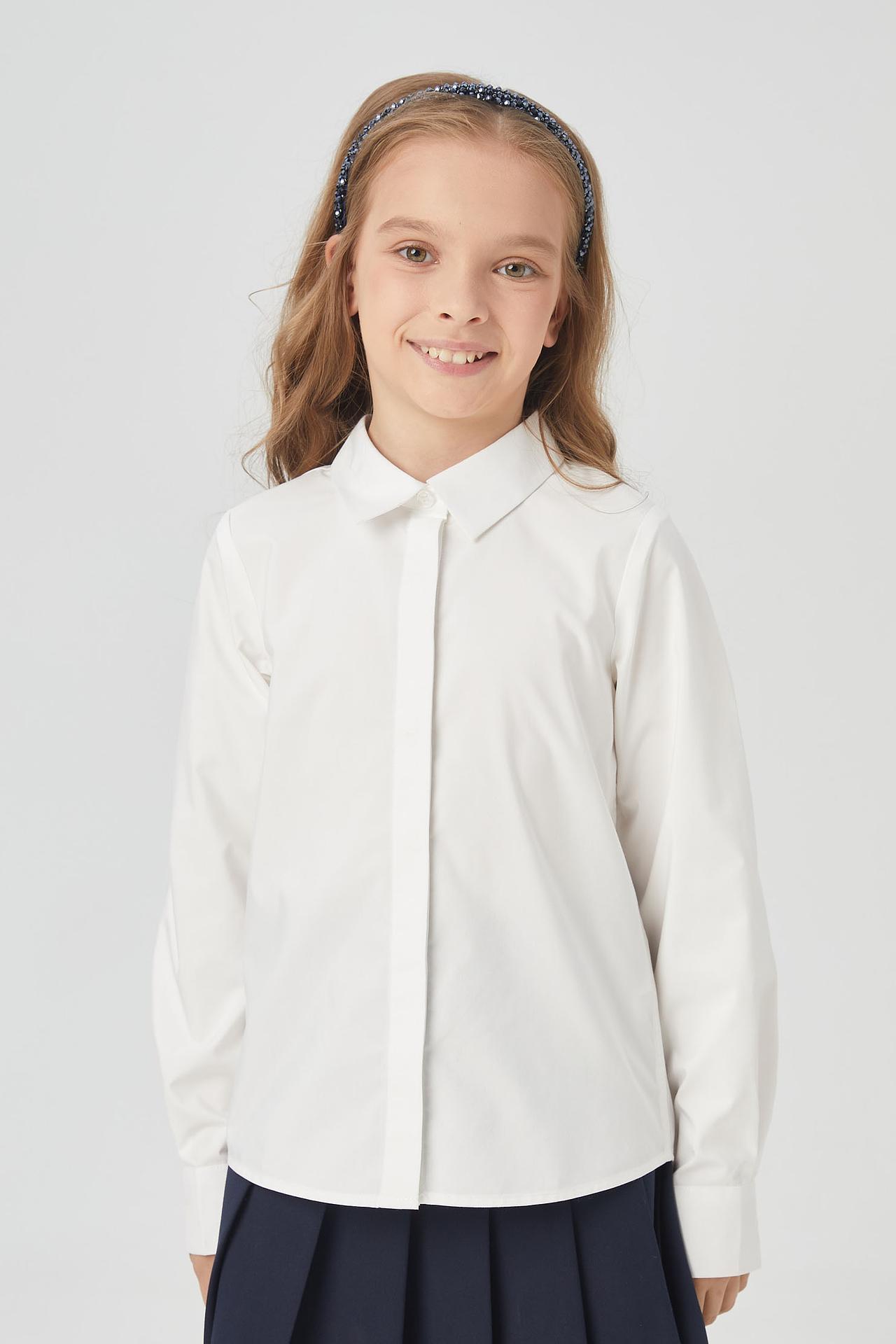 - Классический дизайн: Белоснежная блузка прямого кроя с отложным воротником и потайной застежкой на пуговицах идеально вписывается в любой дресс-код. Она создает аккуратный и нарядный образ для школы и торжественных мероприятий.