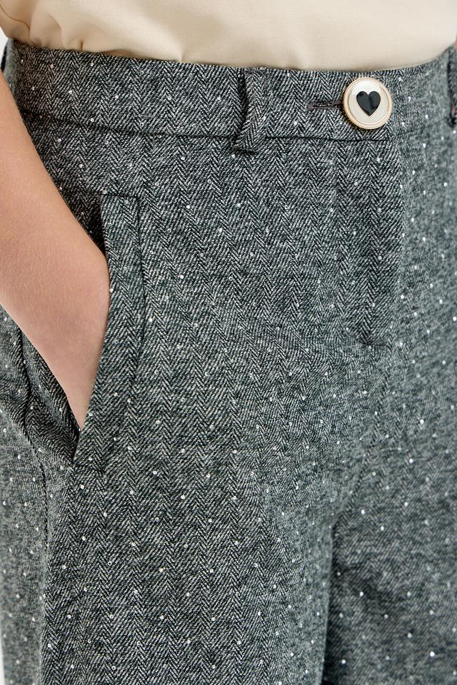 Представляем удобные и модные брюки от бренда Choupette, идеально подходящие для юных модниц. Брюки выполнены в приятном сером цвете с меланжированным эффектом, что придает им особый шарм.
