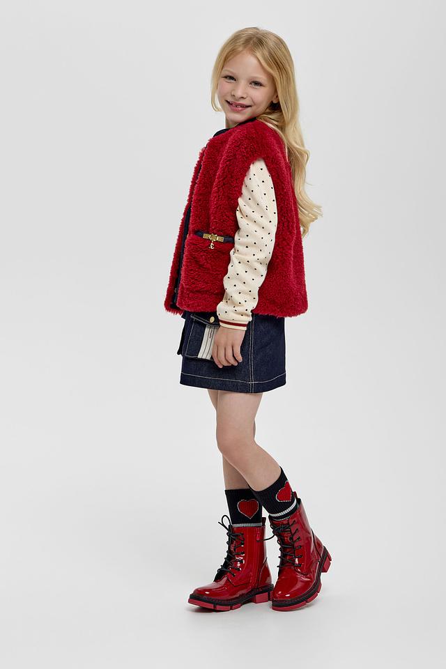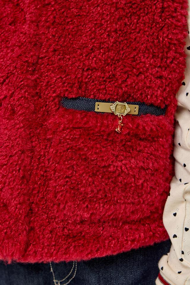 Этот стильный жилет от Choupette станет прекрасным выбором для создания уютного и модного образа вашей девочки. Жилет выполнен в насыщенном бордовом цвете из приятного на ощупь материала, напоминающего овечью шерсть.