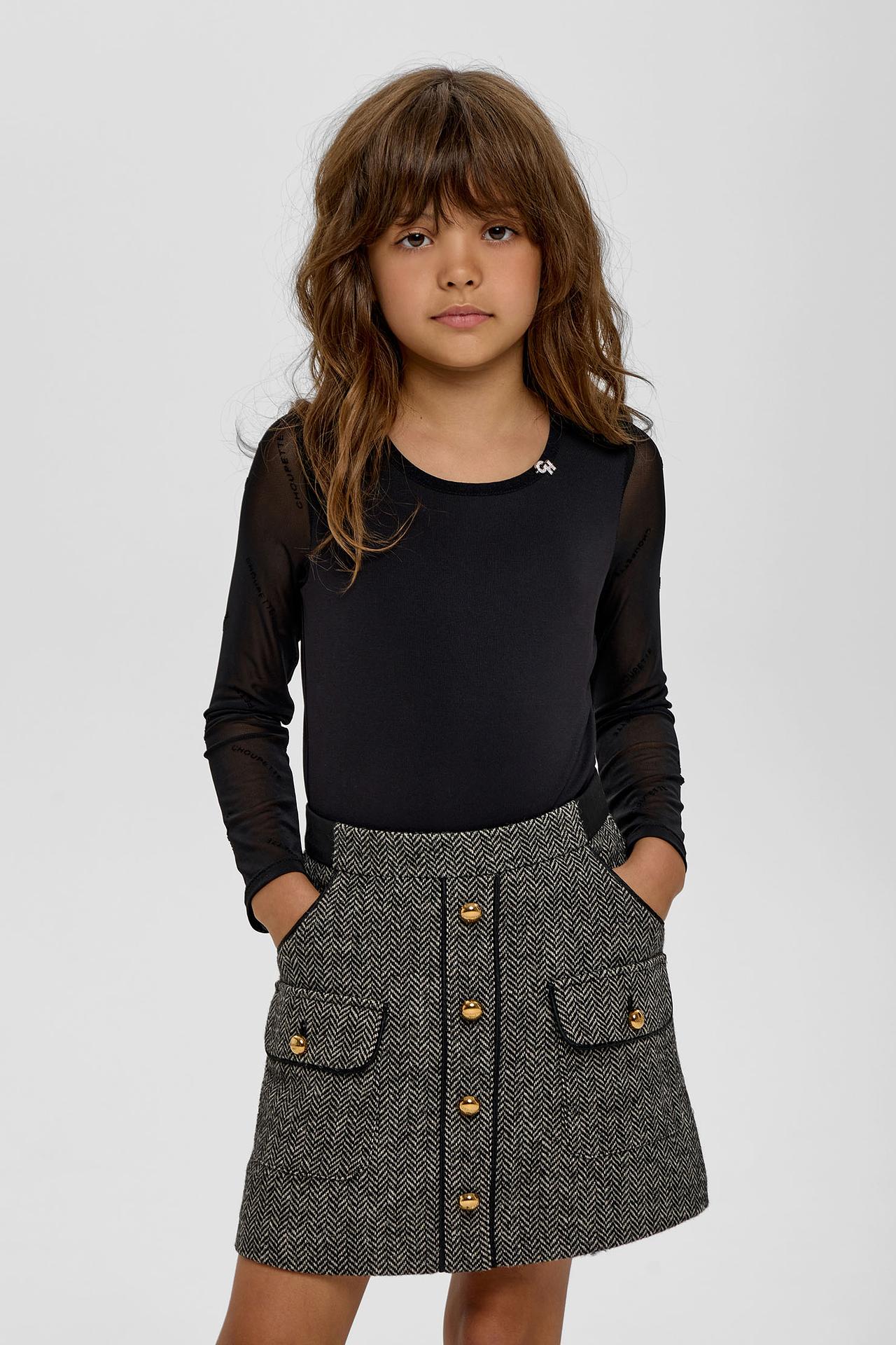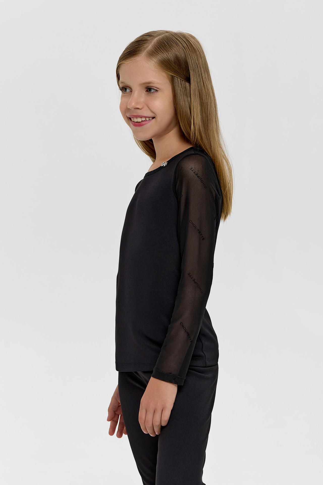 Стильный чёрный джемпер Choupette для девочек, который станет универсальным дополнением к любому гардеробу. Оригинальные рукава из прозрачной сетки с повторяющимся логотипом бренда добавляют модели изысканности и модного акцента. На груди расположен декоративный значок с инициалами бренда, украшенный кристаллами, что подчеркивает эксклюзивность изделия.