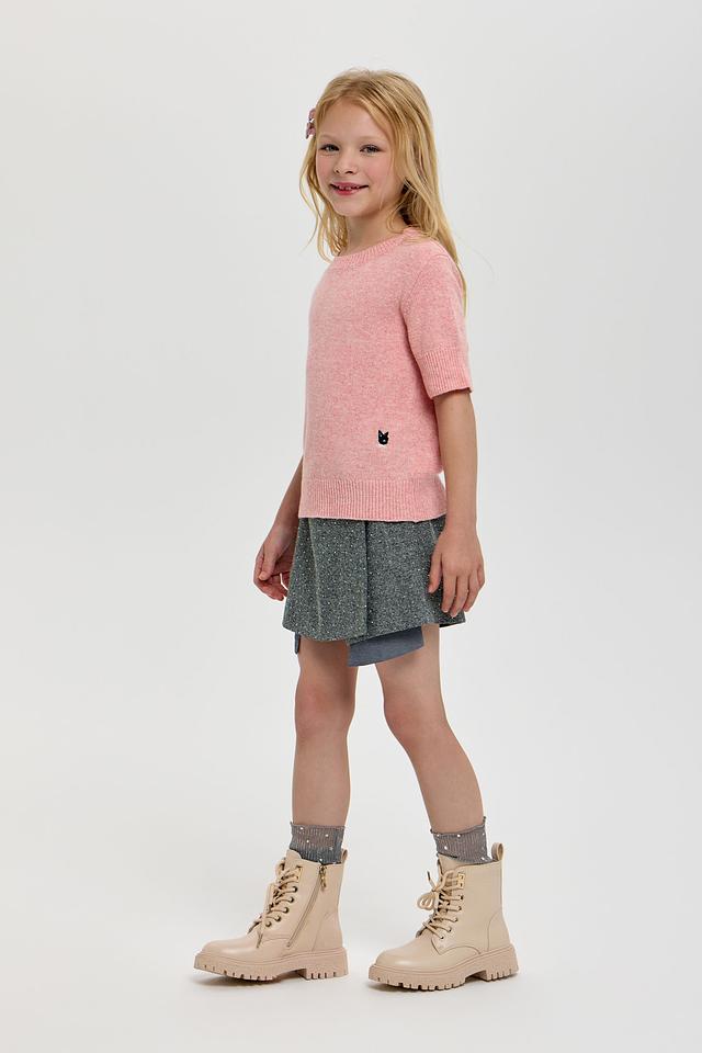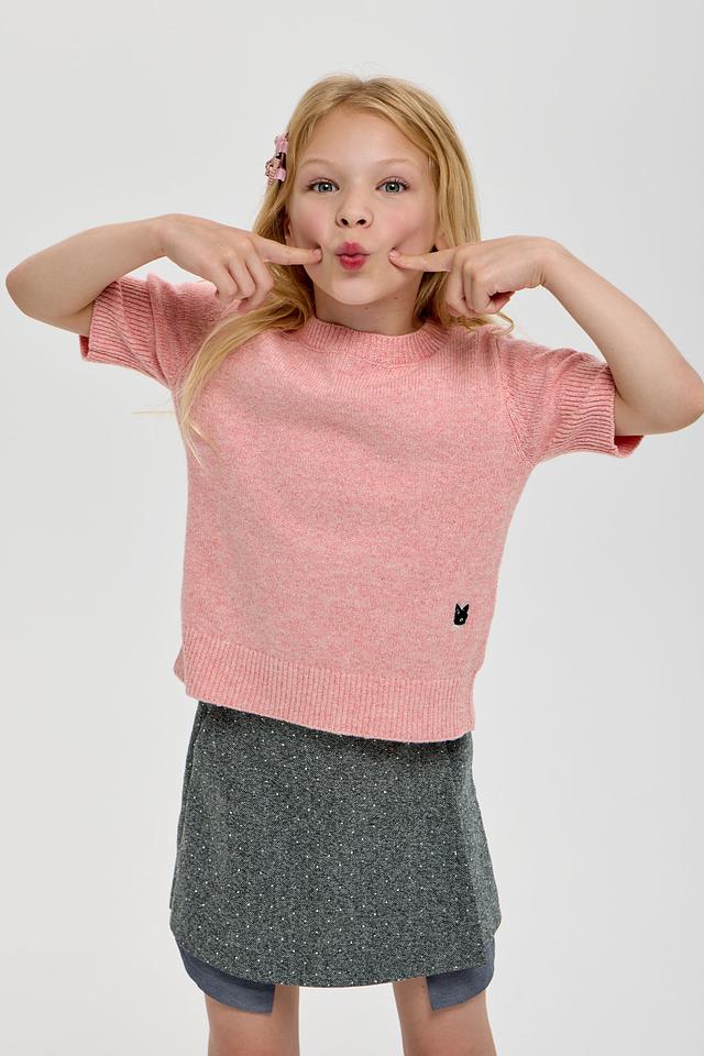 Стильная и уютная блуза Choupette для маленьких модниц. Изделие выполнено в нежном розовом цвете с вкраплениями, придающими текстуре особую изысканность. На груди расположен оригинальный принт в виде черного котика, который добавит образу игривости и шарма. Блуза идеально подходит для повседневной носки, обеспечивая комфорт и свободу движений.
