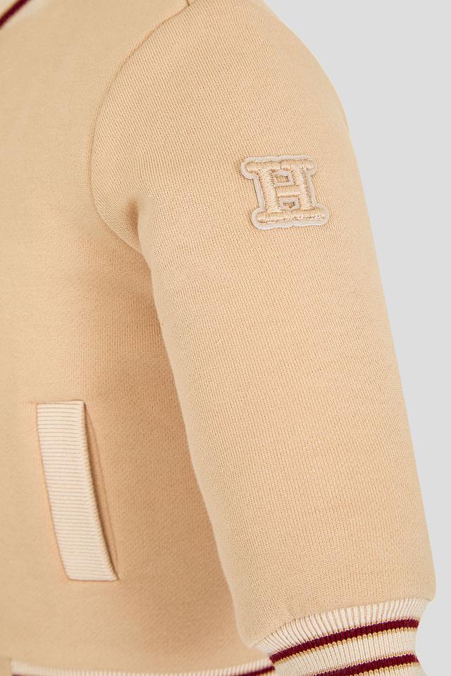 Дизайн куртки дополнен декоративными элементами: нашивка с буквой «H» на рукаве и контрастные полосы на манжетах и нижней части изделия. Куртка имеет два удобных кармана. Такая куртка станет отличным дополнением к гардеробу вашего ребенка и подчеркнет его индивидуальный стиль.