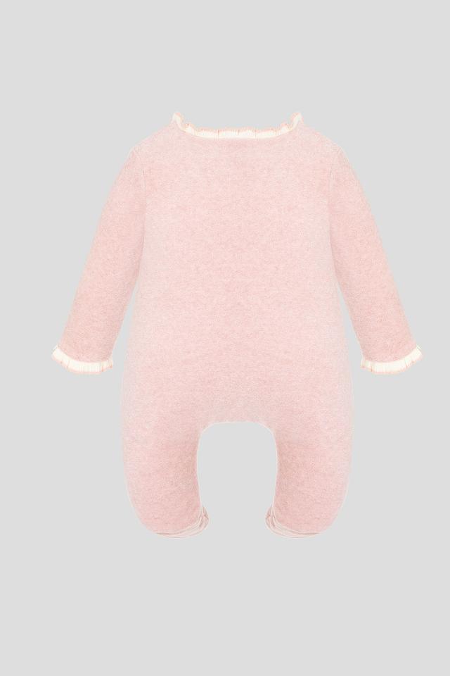 Особое внимание привлекает деликатный декор в виде оборок по горловине и на рукавах, а также вышитый логотип бренда. Комбинезон имеет закрытые ножки, что делает его идеальным выбором для прохладной погоды. Состав подкладки — 100% хлопок, что обеспечивает дополнительный комфорт и гипоаллергенность.
