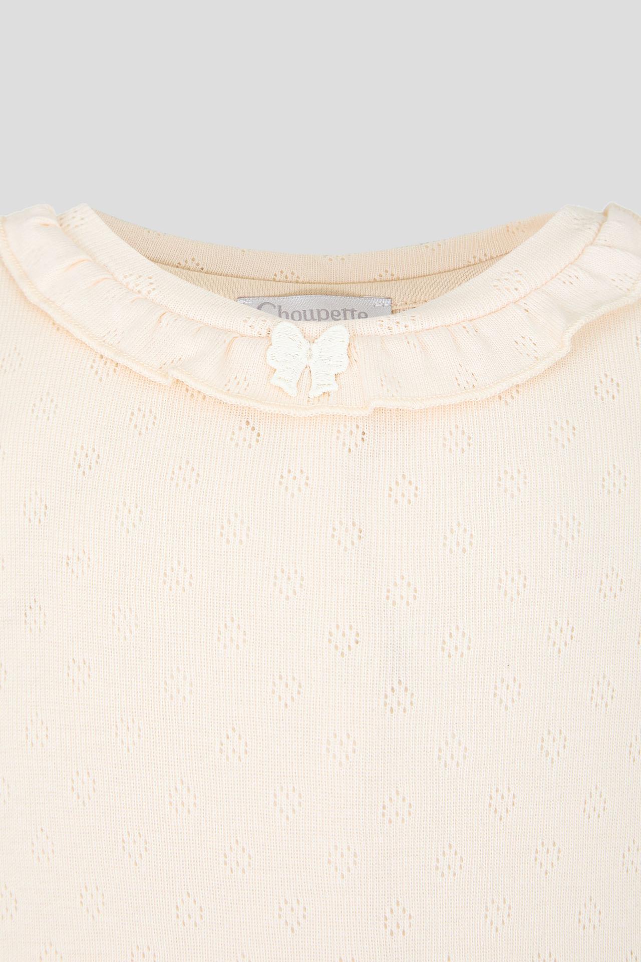 - Дизайн: Элегантный дизайн с мелким узорчатым плетением, воротником с рюшами и милым атласным бантиком делает этот боди идеальным для особых случаев и на каждый день.