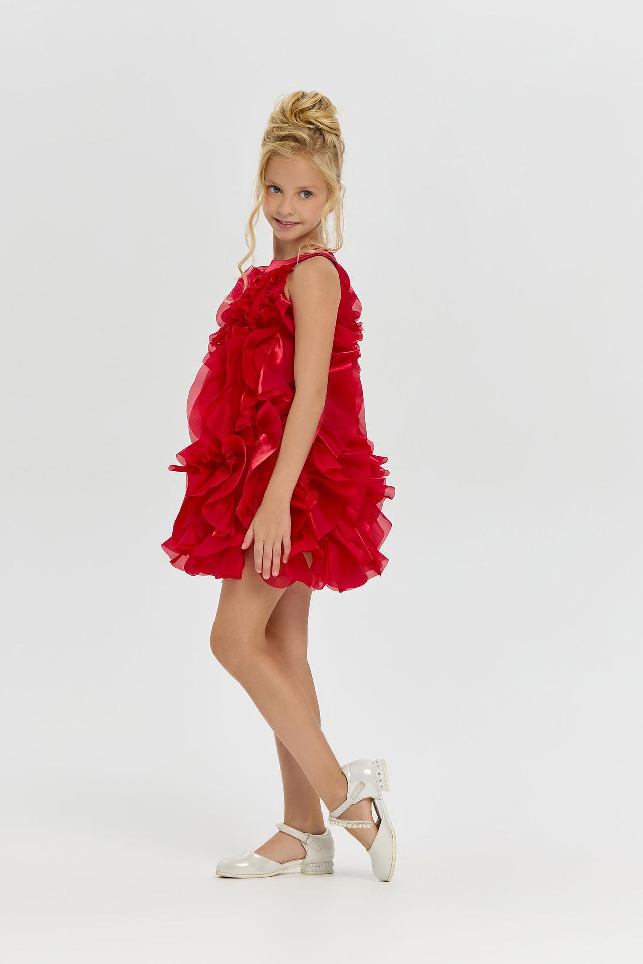 - Дизайн: Оригинальный дизайн с пышными рюшами, создающими эффектный объем и текстуру. Платье без рукавов с круглым вырезом горловины идеально подходит для торжественных случаев и праздников.