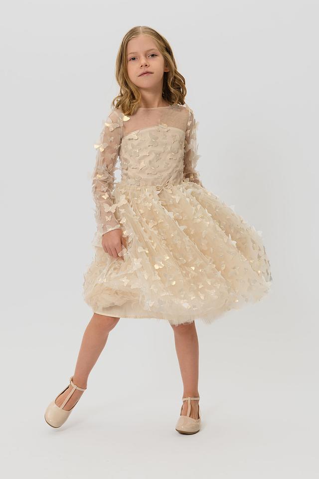 Изысканное платье от бренда Choupette станет украшением любого детского гардероба. Платье выполнено в нежном бежевом цвете и щедро декорировано аппликациями в форме бабочек, создающими воздушный и праздничный образ.