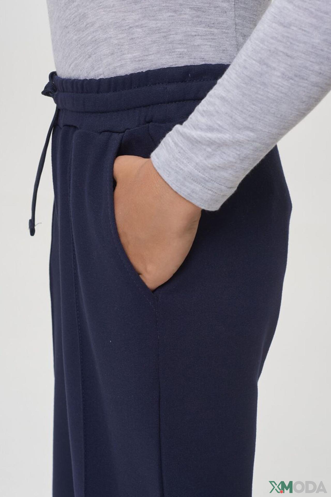 Тёмно-синий цвет брюк делает их универсальными и легко сочетаемыми с любой одеждой. Декоративный шов добавляет изюминку и подчёркивает стиль. Удобный пояс на кулиске позволяет регулировать посадку по фигуре, обеспечивая максимальный комфорт. Брюки отлично подойдут для создания модных и стильных образов.