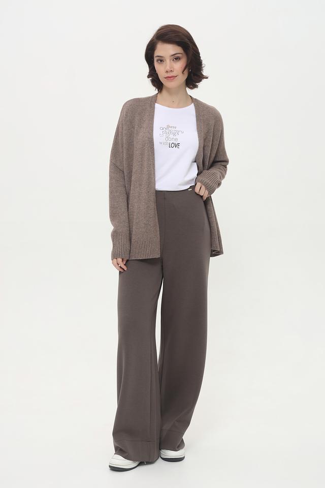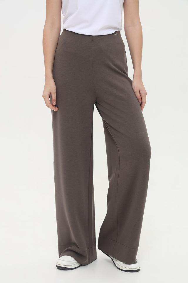 Женские брюки Cinque цвета серо-коричневый, выполнены из мягкой ткани с добавлением вискозы и эластана. Модель палаццо с эластичным поясом обеспечит комфорт и свободу движений. Состав: полиэстер 82%, вискоза 14%, эластан 4%