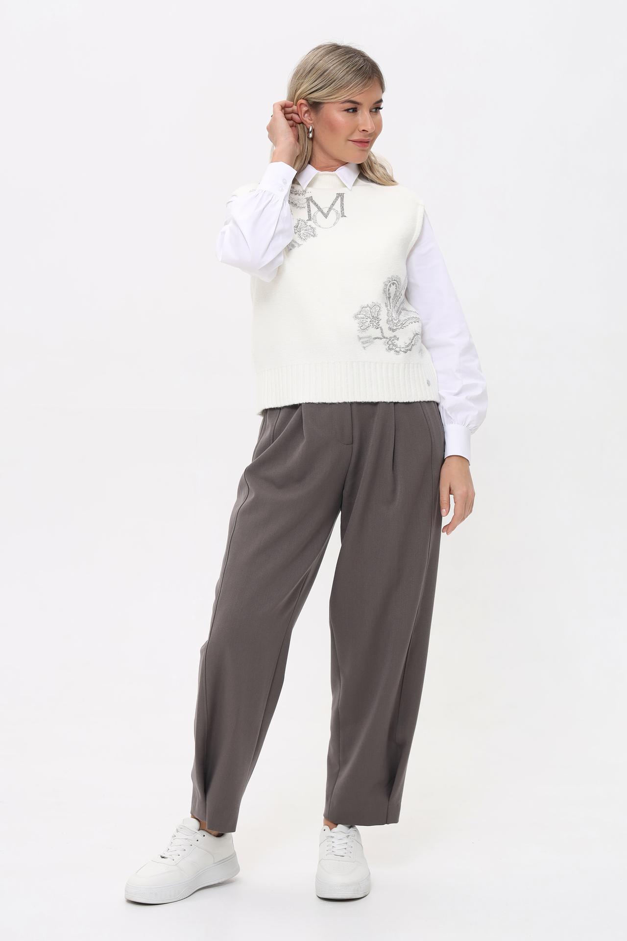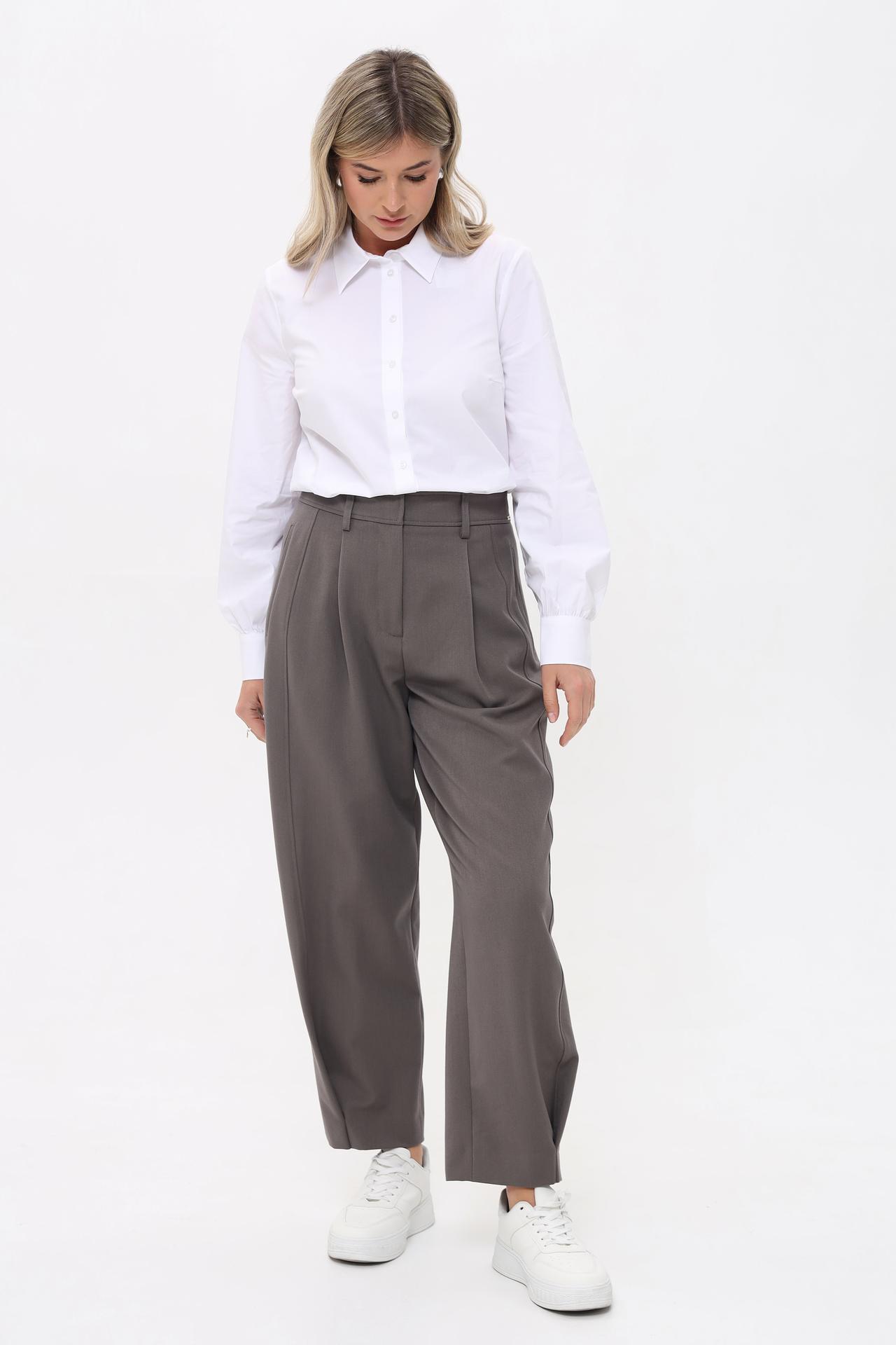 - Универсальность: Эти брюки прекрасно сочетаются с блузками, рубашками, топами и пиджаками, позволяя создавать множество стильных ансамблей для офиса, деловых встреч или неформальных выходов.