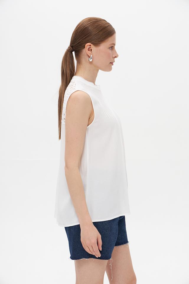 - Универсальность: Белый цвет и лаконичный крой позволяют сочетать эту майку с брюками, юбками и джинсами.