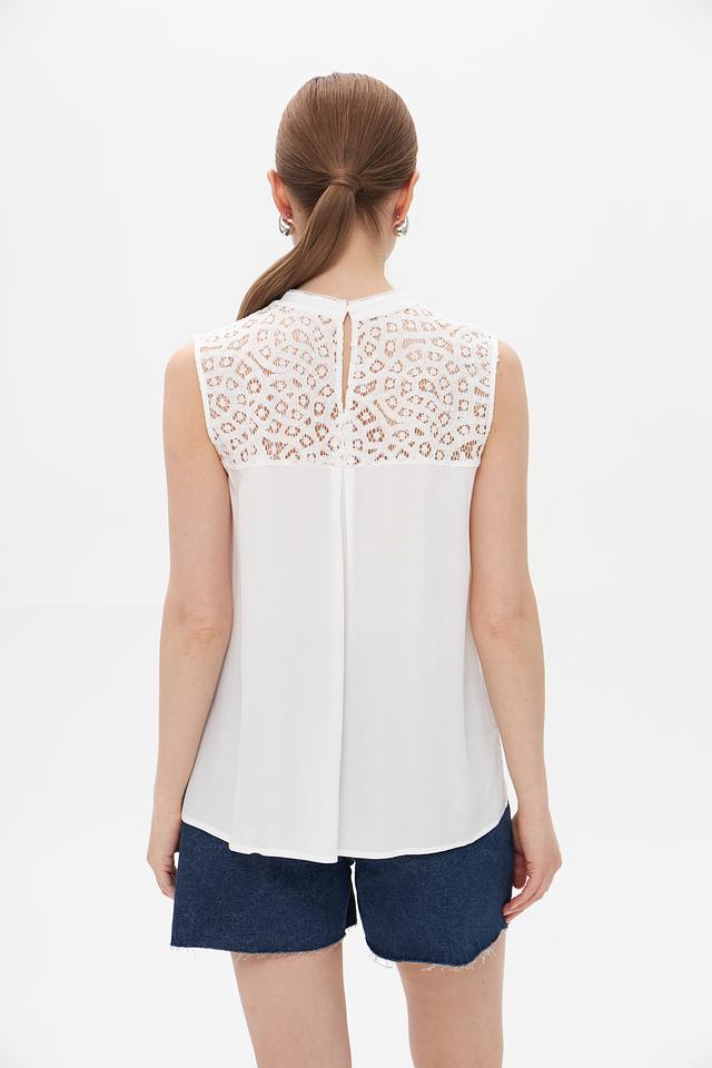 - Элегантный дизайн: Декоративная кружевная отделка горловины и спинки добавляет образу изысканности и женственности.
