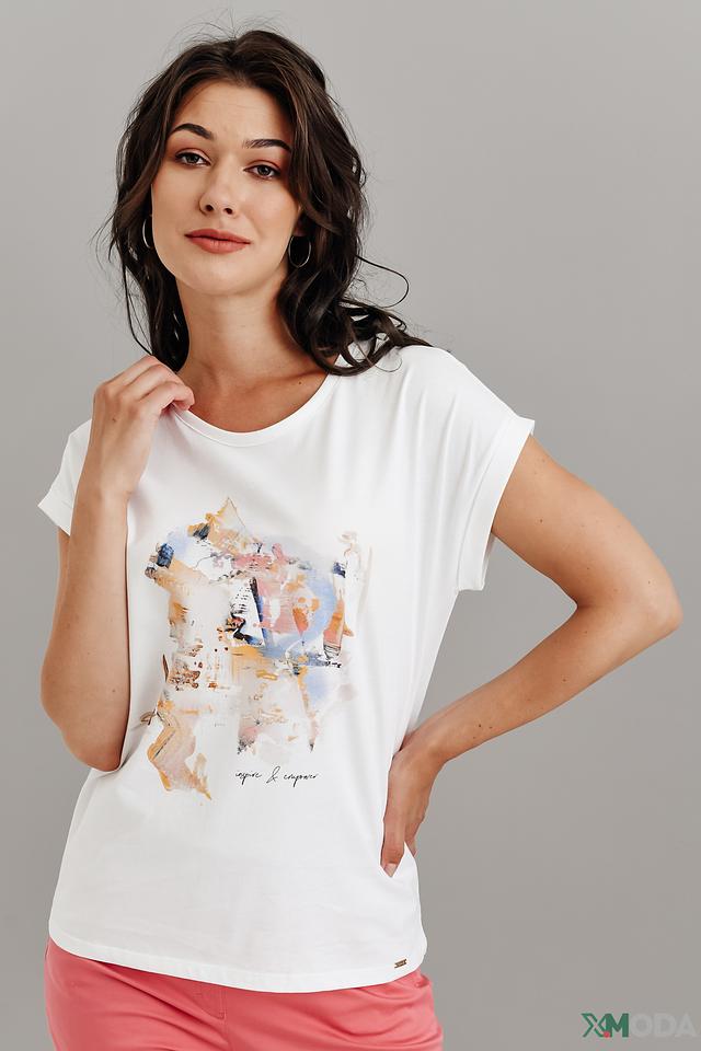 Белая футболка от Cinque с оригинальным абстрактным принтом. Изготовлена из 100% хлопка, обеспечивающего комфорт и воздухопроницаемость. Стильный крой с короткими рукавами и округлым вырезом. Состав: хлопок 100%