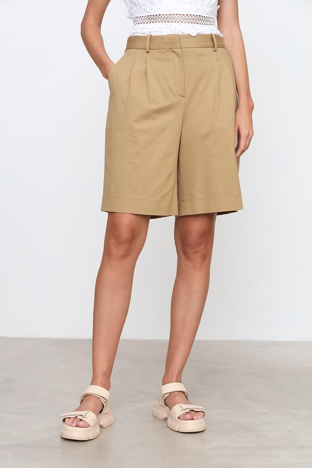 Женские шорты Circolo 1901 бежевого цвета – это стильное и комфортное решение для летнего гардероба. Модель прямого кроя с поясом и защипами обеспечивает удобную посадку и подчеркивает фигуру. Изготовлены из хлопка с добавлением эластана. Состав: хлопок 92%, эластан 8%