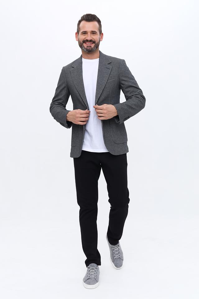Модель оснащена стандартными карманами и застежкой на пуговицы. Ткань пиджака приятна на ощупь и хорошо держит форму. Благодаря добавлению эластана, пиджак не сковывает движения и обеспечивает максимальный комфорт.