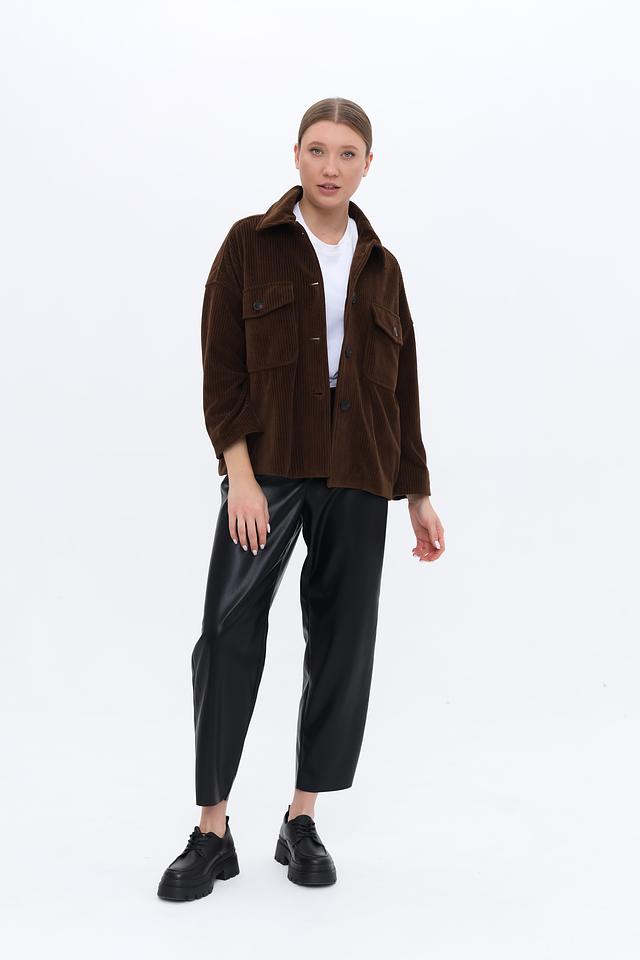 Жакет застегивается на пуговицы в тон ткани. Длинные рукава с манжетами обеспечивают комфортную посадку. Модель идеально сочетается с джинсами, брюками или юбками, создавая стильный и современный образ.