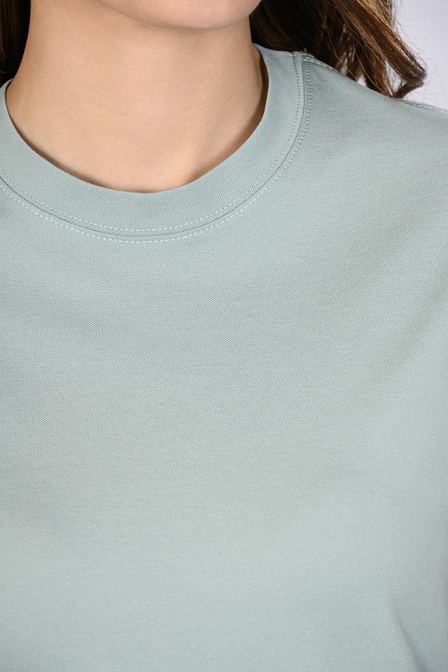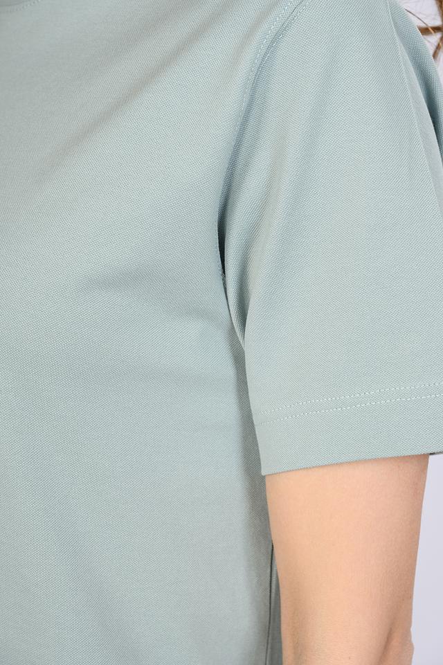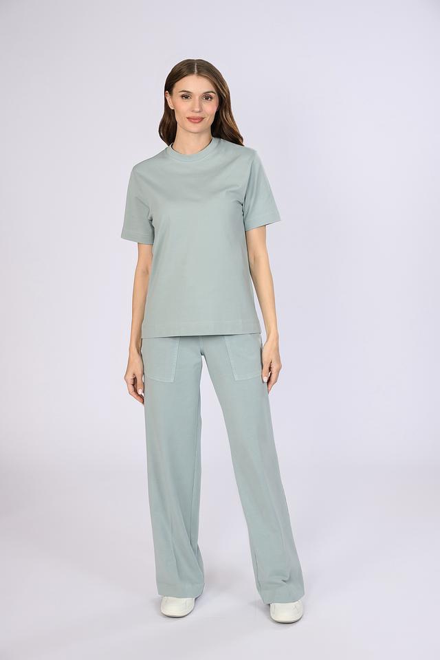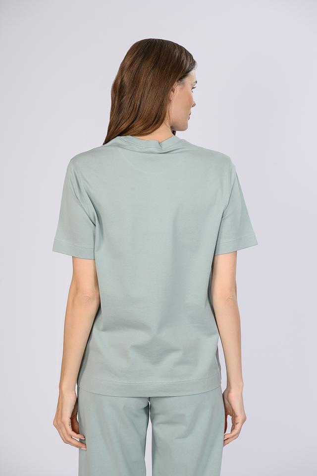 Футболка имеет прямой крой, который подходит для любого типа фигуры. Круглый вырез горловины придает ей классический вид. Мятный цвет делает эту футболку универсальной и легко сочетаемой с другими элементами одежды.