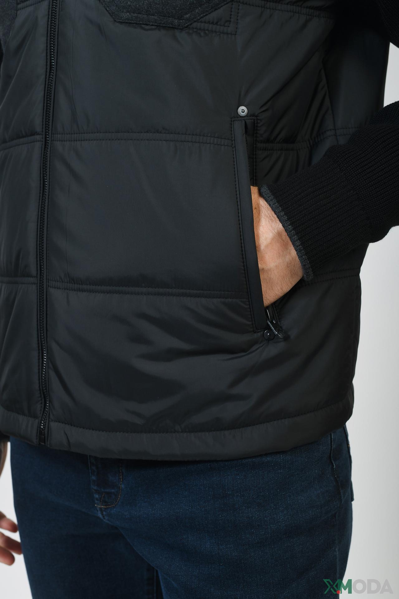 - Дизайн: Сочетание стёганого жилета с трикотажными рукавами придаёт куртке современный и элегантный вид.