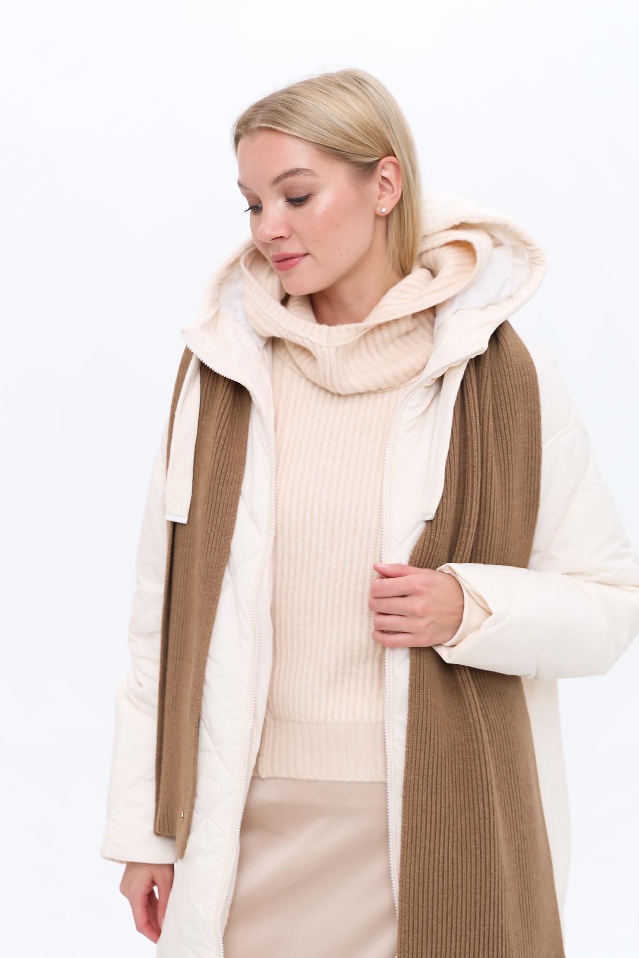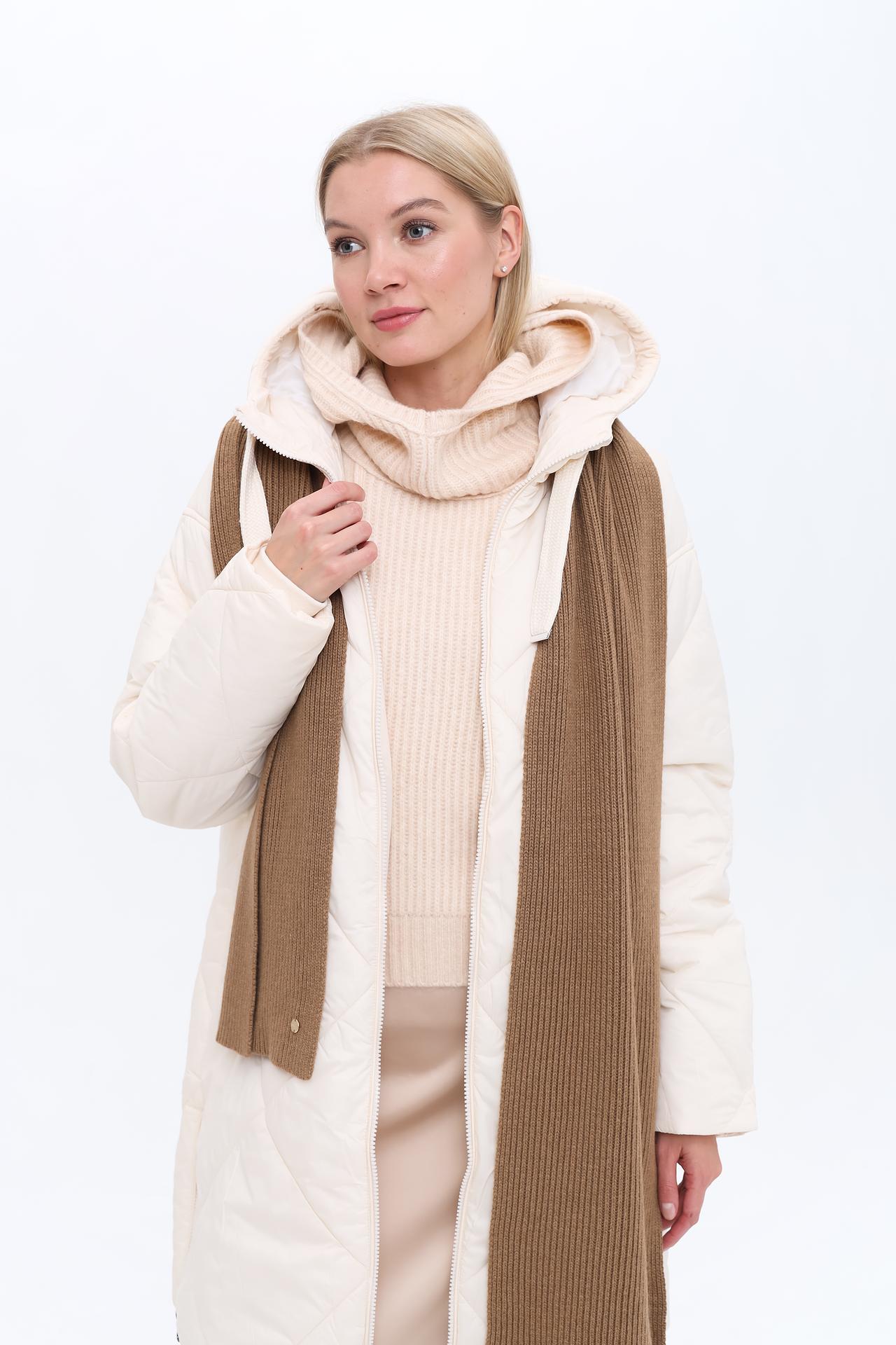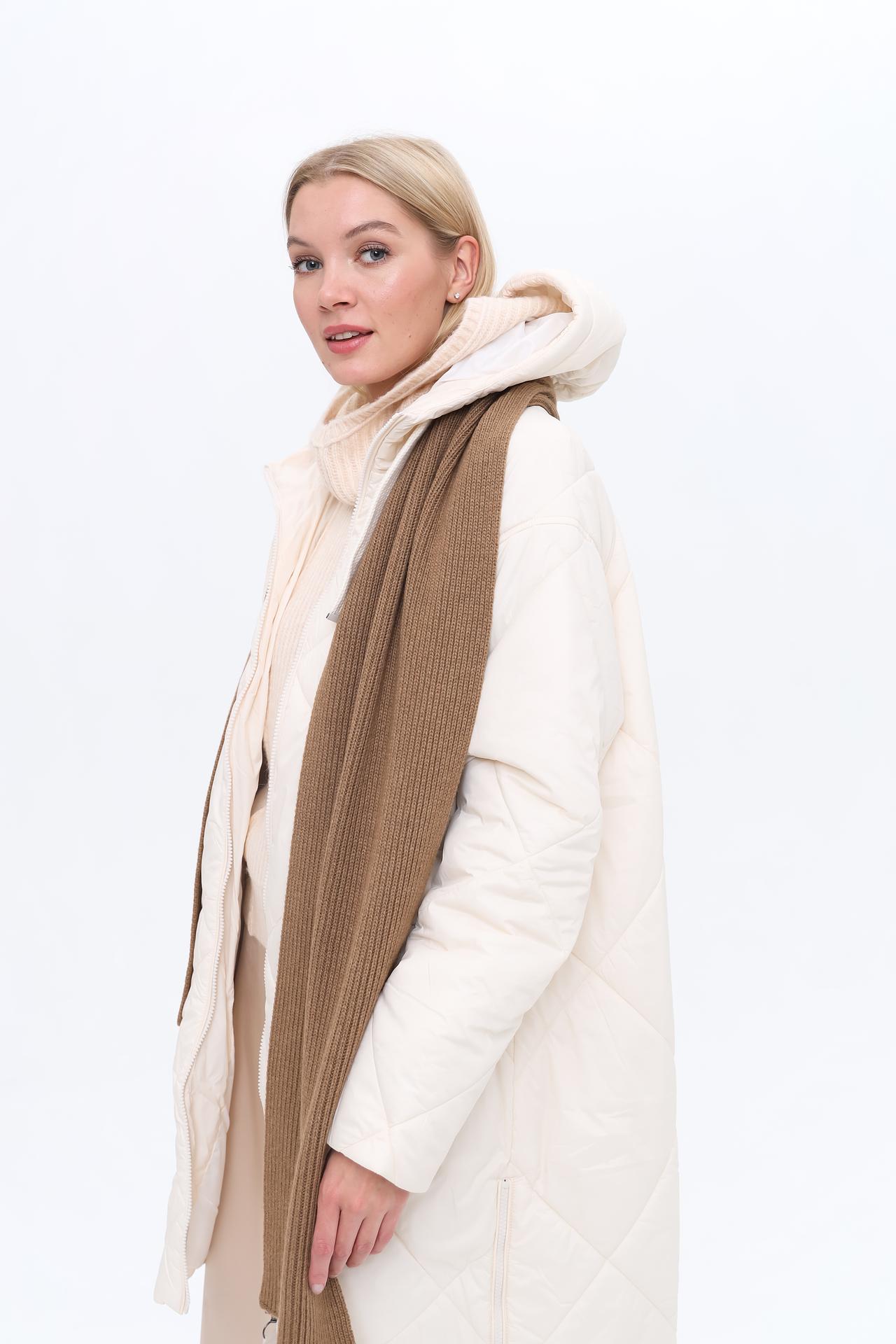 • Лаконичный дизайнОднотонное исполнение и фактурная вязка в рубчик делают этот аксессуар универсальным. Он легко сочетается как с классическим пальто, так и со стеганой курткой, добавляя образу завершенности.
