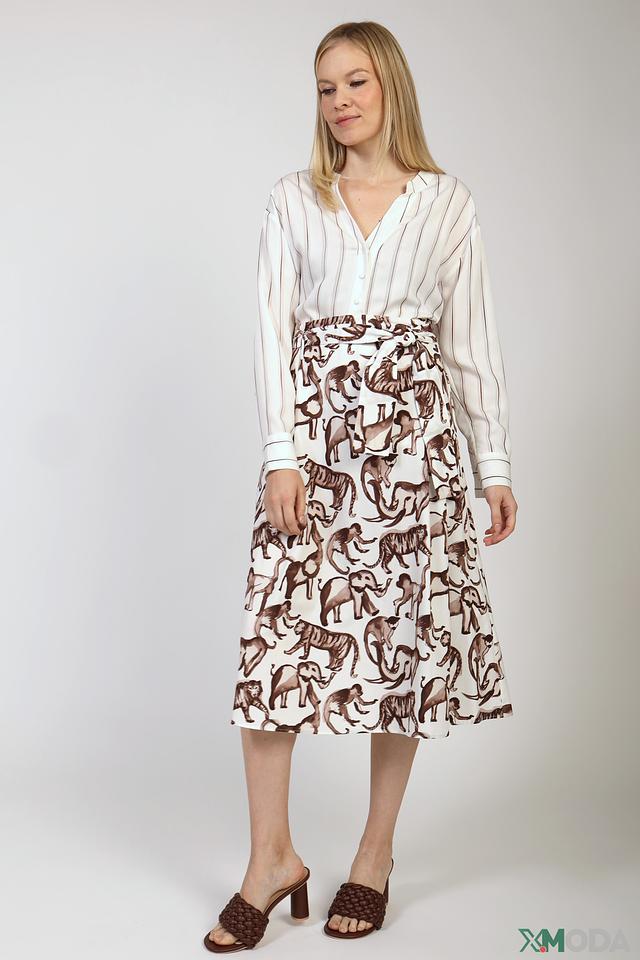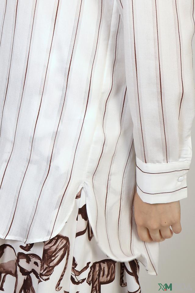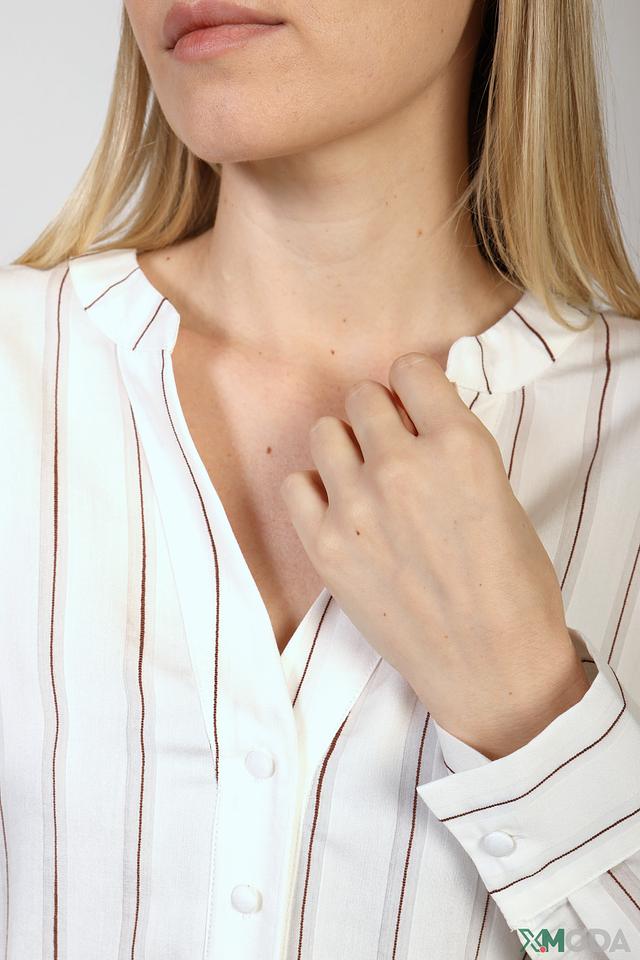 Эта блуза от Comma станет прекрасным дополнением к вашему гардеробу. Выполнена в белом цвете с вертикальной полоской коричневого оттенка, что придает ей изысканность и свежесть.