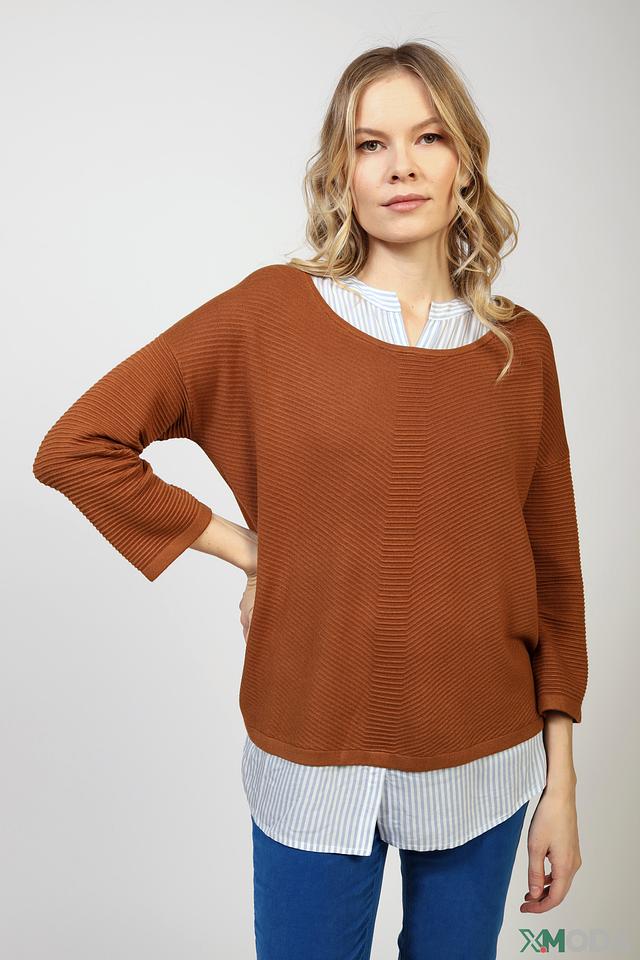Коричневая блуза Comma с выраженной текстурой и рукавами 3/4 станет отличным дополнением к вашему гардеробу. Модель свободного кроя с округлым вырезом горловины, идеально сочетается с другими элементами одежды. Состав: вискоза 81%, полиамид 17%, эластан 2%