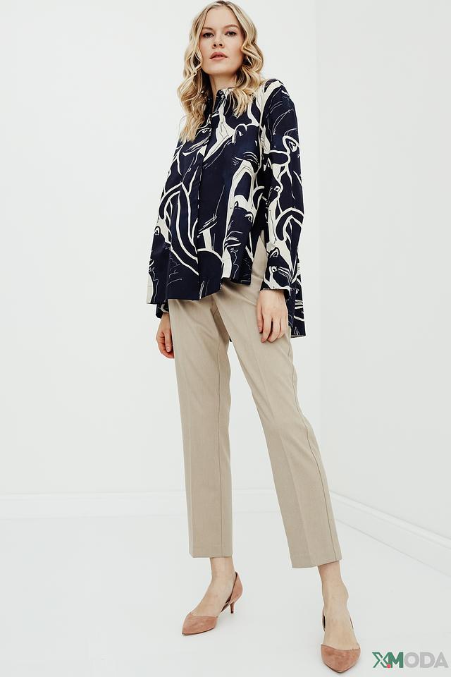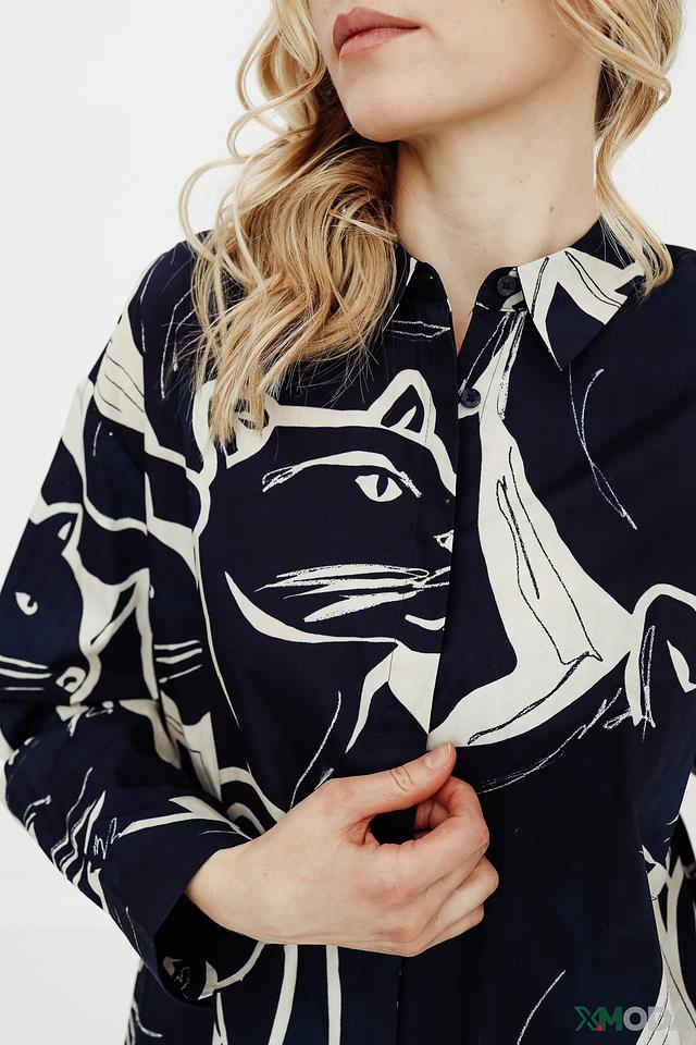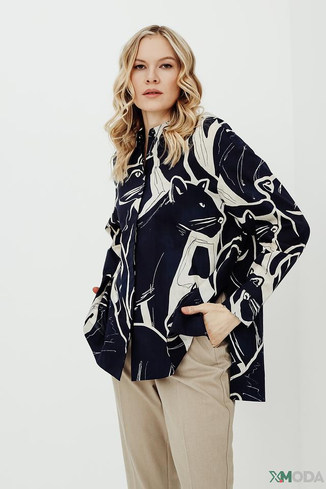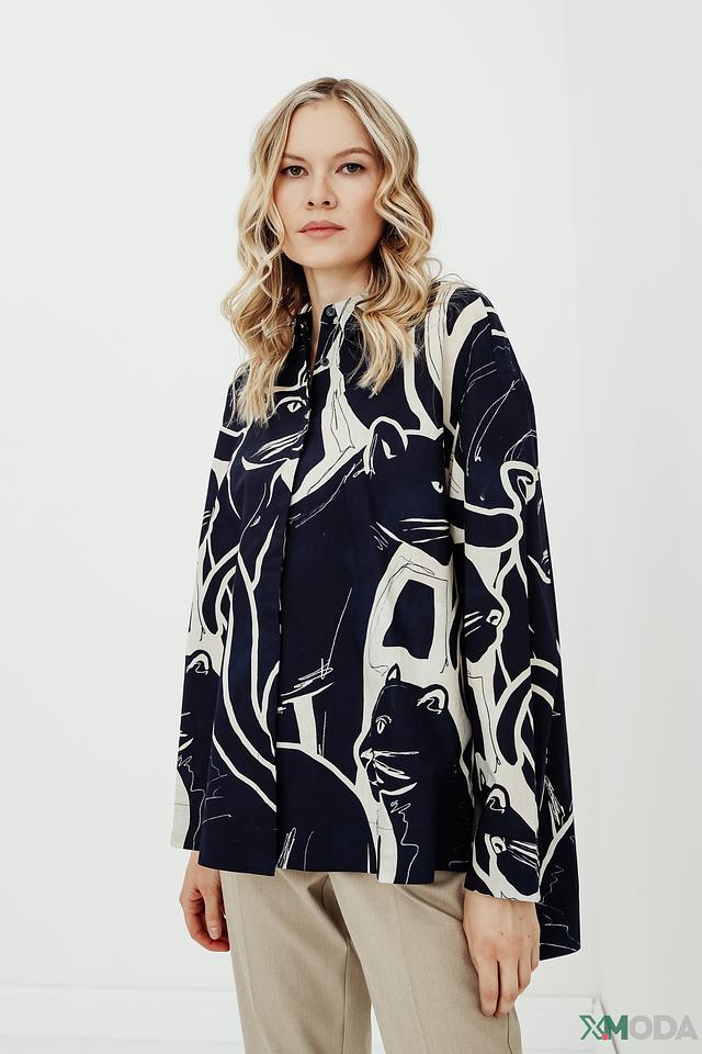 Рубашка имеет длинные рукава и классический крой, который подходит для различных типов фигур. Воротник рубашки придает ей элегантность и позволяет носить ее как с брюками, так и с юбками.