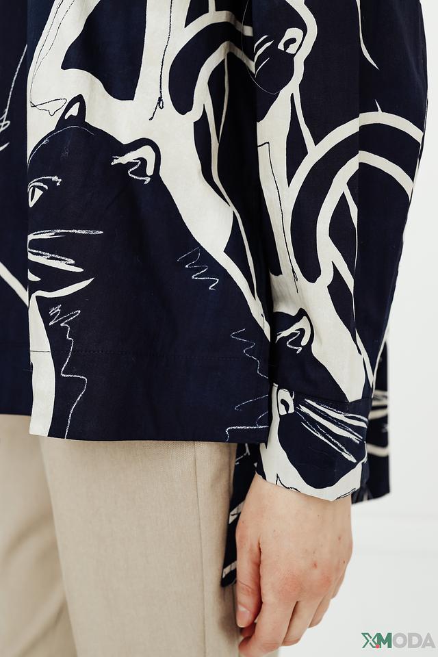 Стильная рубашка Comma темно-синего цвета с оригинальным принтом станет ярким акцентом вашего образа. Модель выполнена из 100% хлопка, обеспечивая комфорт и воздухопроницаемость. Состав: хлопок 100%