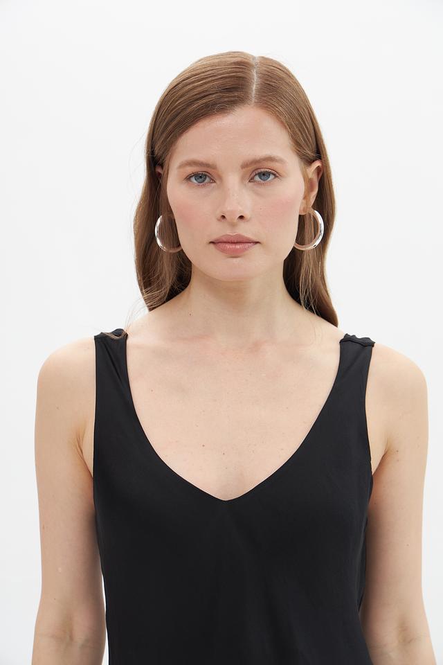 Чёрный топ Croche из 100% вискозы — это стильное и комфортное решение для создания повседневных образов. Модель с V-образным вырезом и тонкими бретелями подчеркнёт женственность силуэта. Состав: вискоза 100%