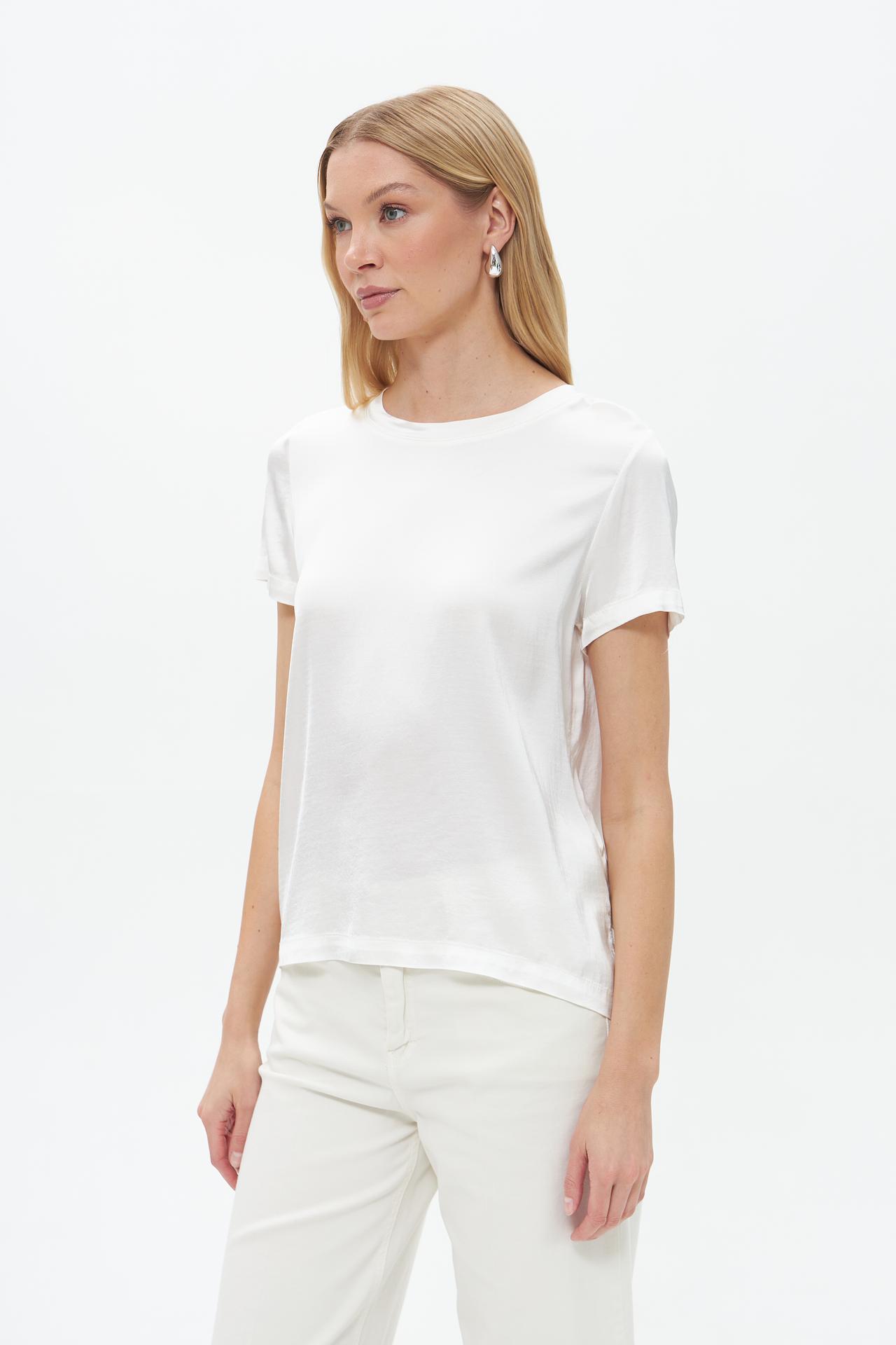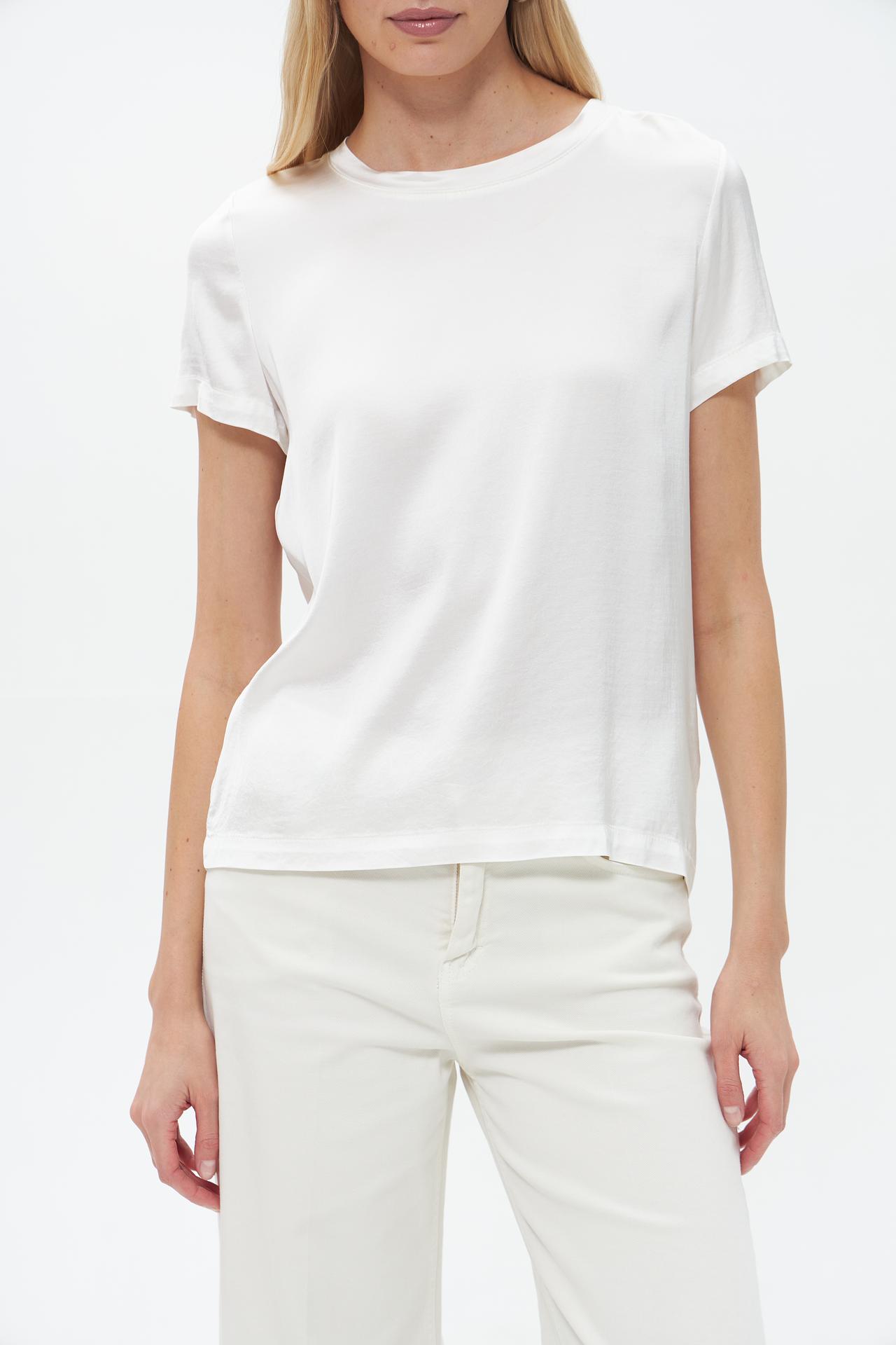 - Универсальный дизайн. Базовая модель с круглым вырезом подходит для любого типа фигуры и легко сочетается с другими вещами.