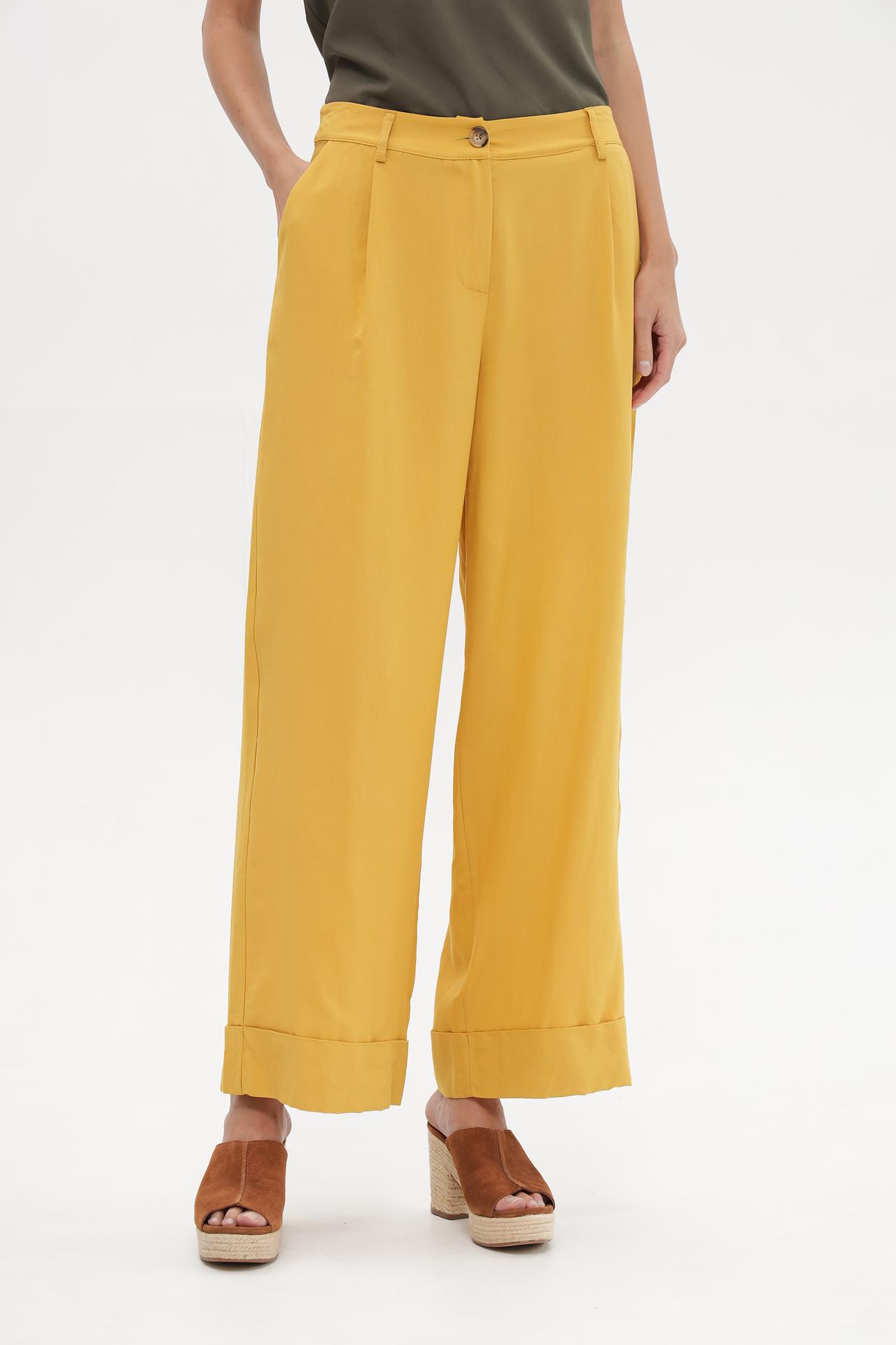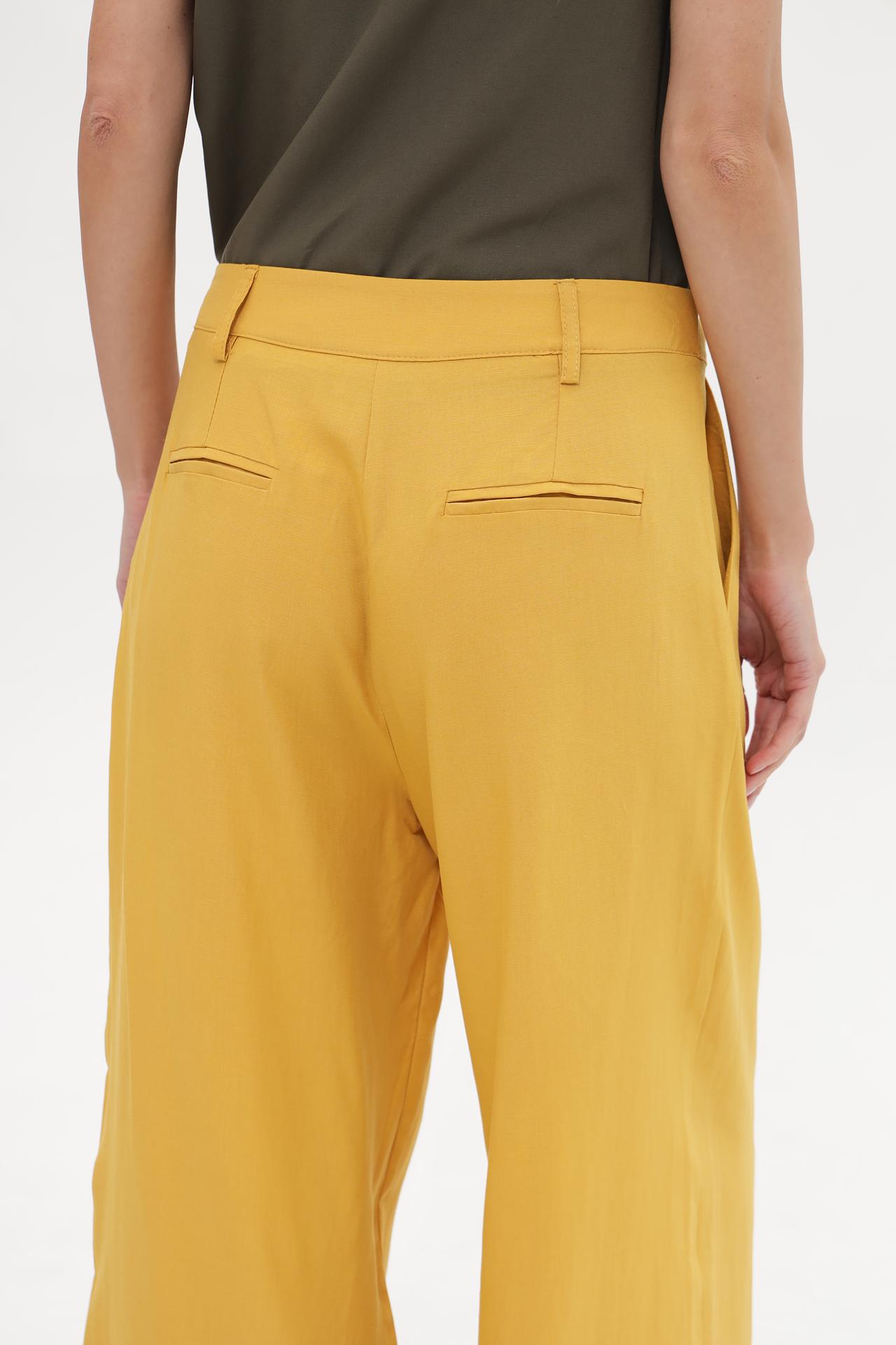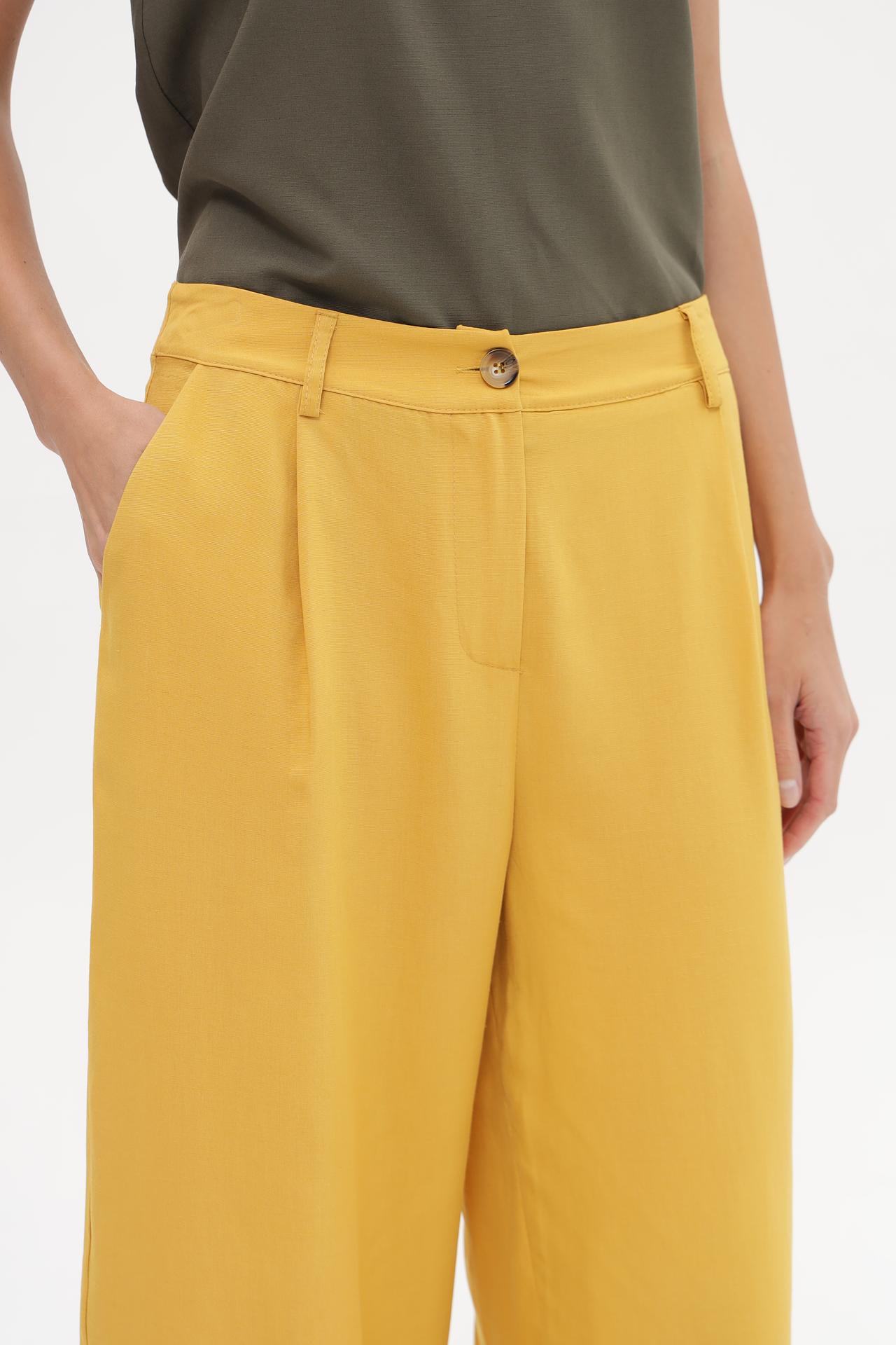 Брюки Croche горчичного цвета широкие вискоза-лен