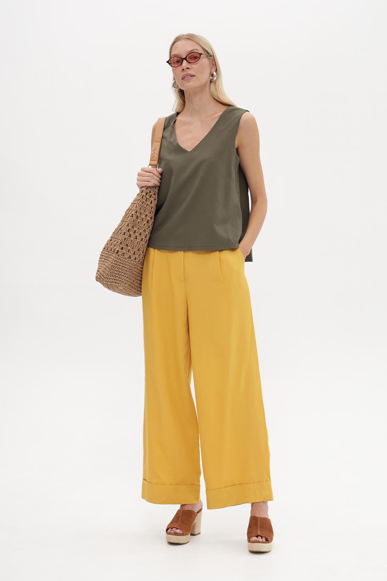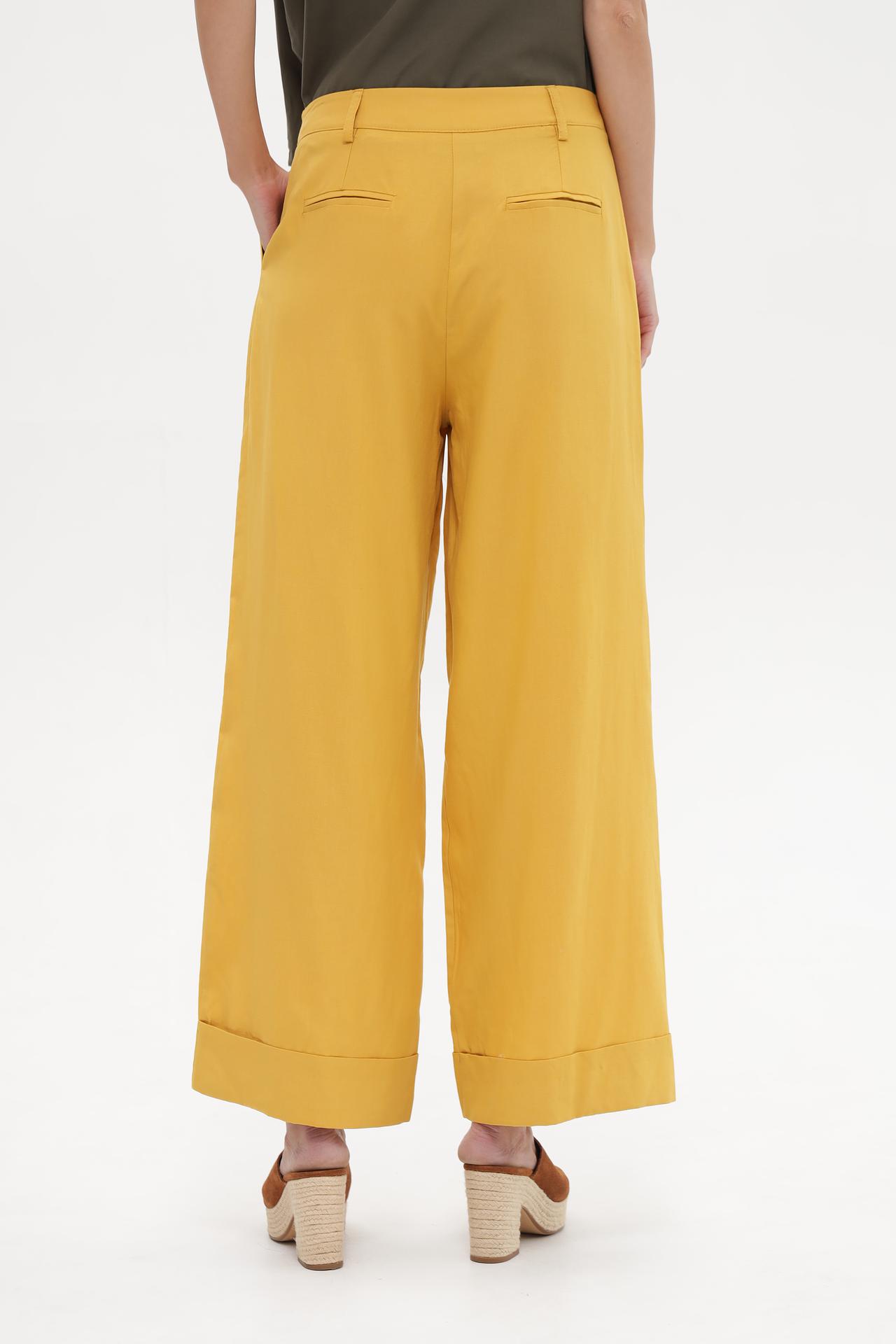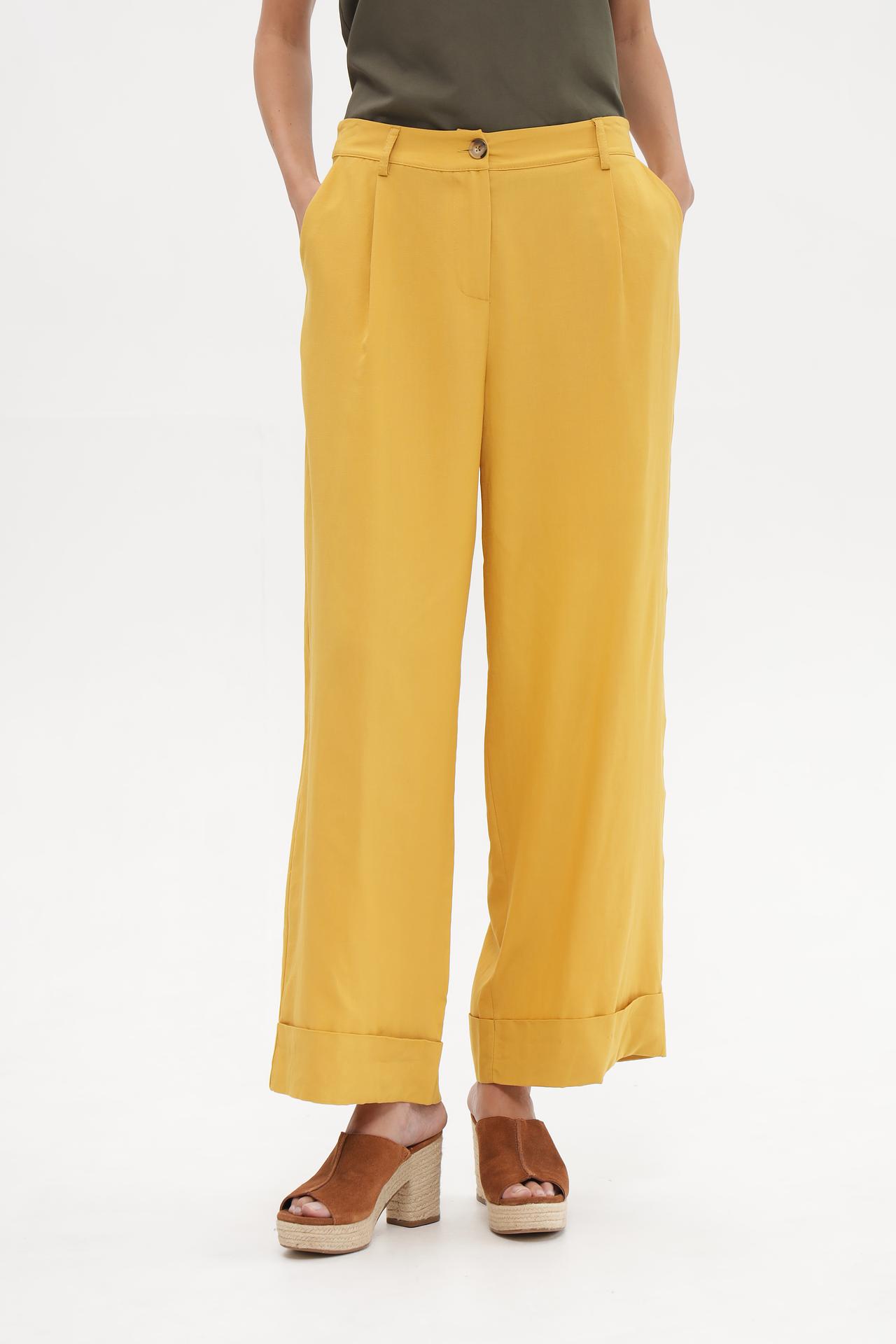 Брюки Croche горчичного цвета широкие вискоза-лен