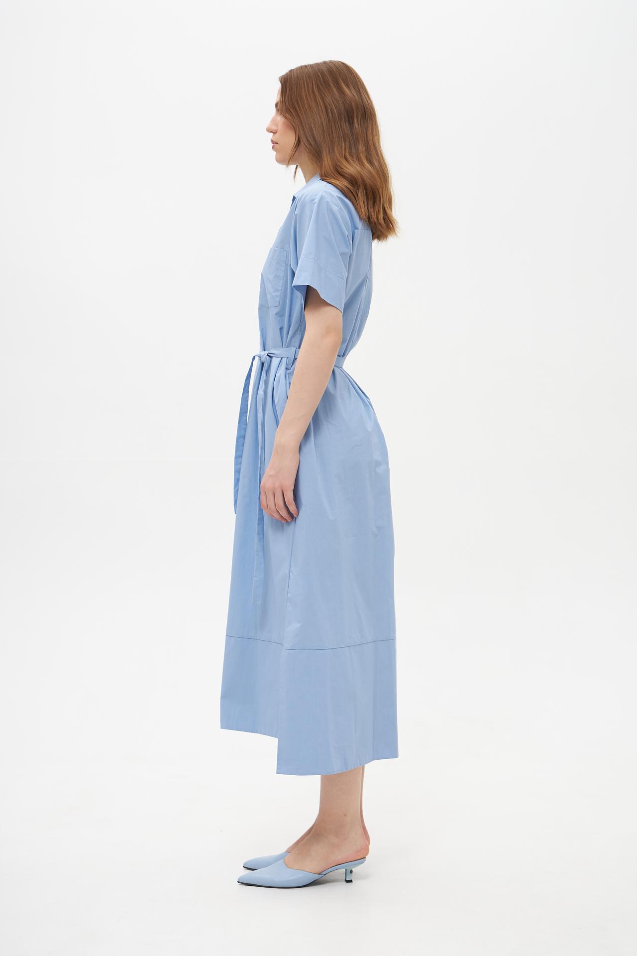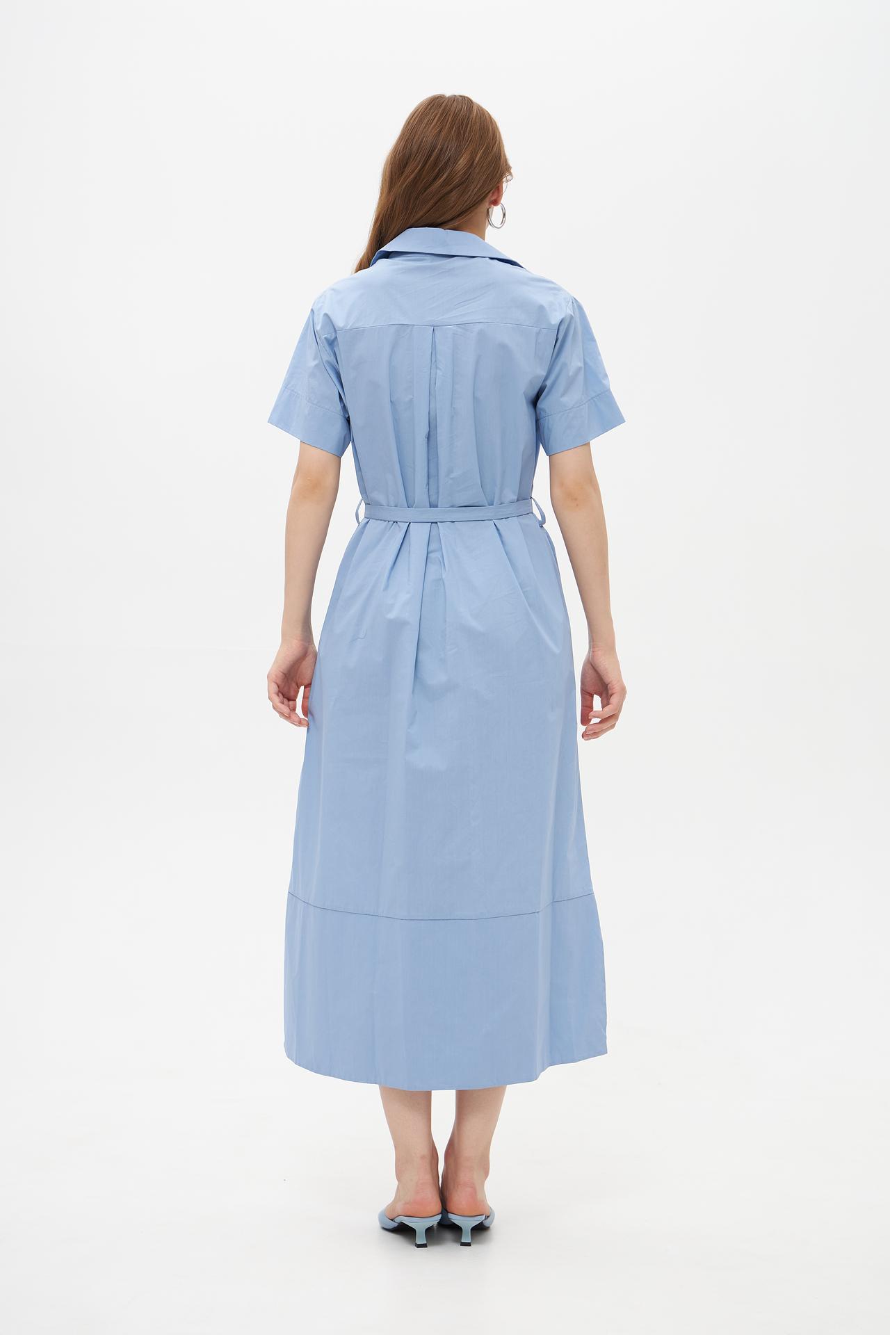 Легкое женское платье Croche из 100% хлопка — идеальный выбор для летнего гардероба и повседневного стиля. Голубое хлопковое платье-рубашка миди длины обеспечивает комфорт и свободу движений в течение всего дня, становясь незаменимым элементом вашего образа.