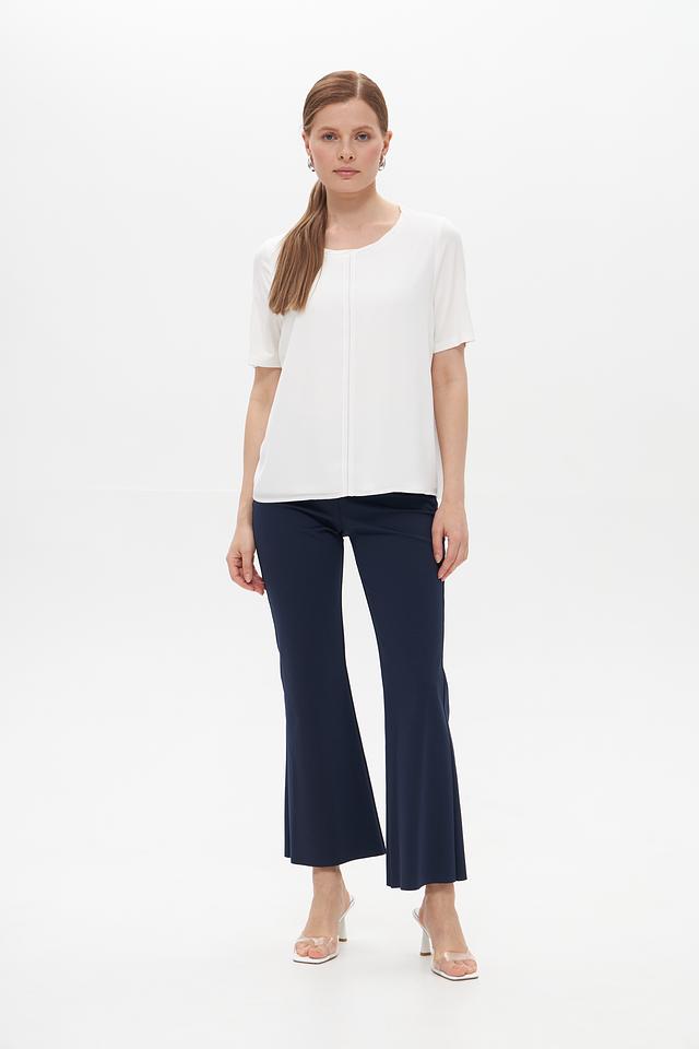 Брюки имеют клёш от бедра, что придает им женственный и утонченный вид. Высокая посадка подчеркивает талию и визуально удлиняет ноги. Плотная ткань обеспечивает хорошую поддержку и сохраняет форму изделия.