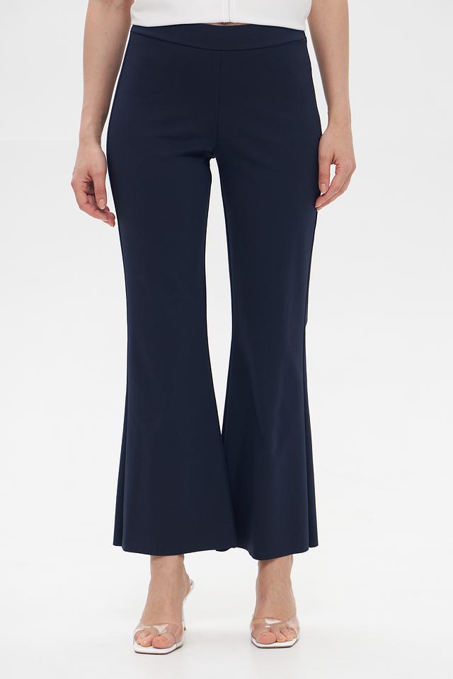 Стильные брюки Croche клёш тёмно-синего цвета станут отличным дополнением к вашему гардеробу. Модель выполнена из плотной ткани с добавлением эластана, обеспечивающего комфортную посадку и свободу движений. Состав: хлопок 52%, полиамид 40%, эластан 8%