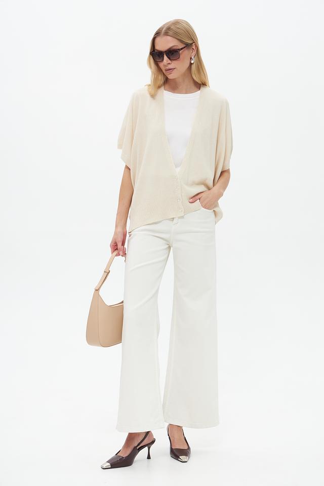 Представляем вашему вниманию стильные джинсы клеш от бренда Croche. Эта модель выполнена в нежном молочном цвете, который легко сочетается с различными элементами гардероба.