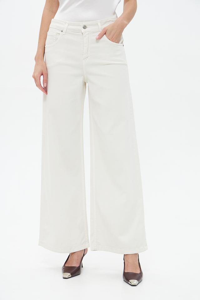 Джинсы изготовлены из высококачественного хлопка (97%) с добавлением эластана (3%), что обеспечивает комфортную посадку и свободу движений. Классический крой и широкие штанины создают элегантный и современный силуэт.