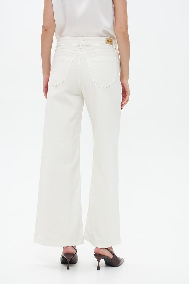 Женские джинсы клеш от Croche молочного цвета, выполнены из хлопка с добавлением эластана для комфорта. Модель отличается широким низом и классической посадкой. Состав: хлопок 97%, эластан 3%